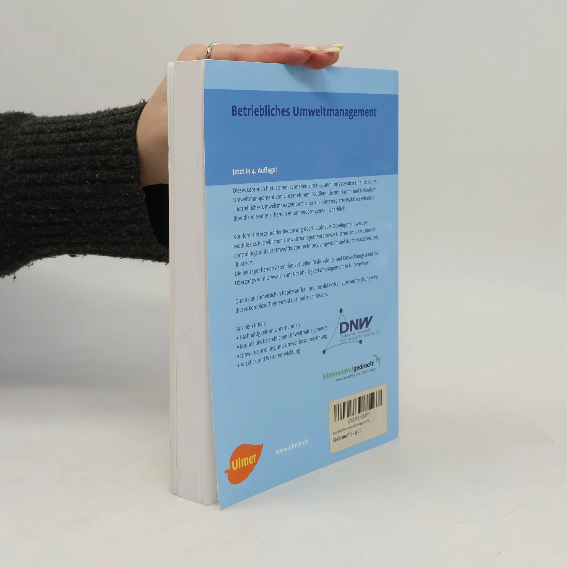 Dieses Lehrbuch bietet einen schnellen Einstieg und umfassenden Einblick in das Umweltmanagement von Unternehmen. Studierende mit Haupt- und Nebenfach Betriebliches Umweltmanagement, aber auch interessierte Praktiker erhalten über die relevanten Themen einen hervorragenden Überblick. Vor dem Hintergrund der Bedeutung des Sustainable Development werden -Module des betrieblichen Umweltmanagements sowie Instrumente des Umweltcontrollings und der Umweltkostenrechnung vorgestellt und durch Praxisbeispiele illustriert. Die Beiträge thematisieren den aktuellen Diskussions- und Entwicklungsstand des Übergangs vom Umwelt- zum Nachhaltigkeitsmanagement in Unternehmen. Durch den einheitlichen Kapitelaufbau und die didaktisch gute Aufbereitung wird dieses komplexe Themenfeld optimal erschlossen. Aus dem Inhalt: - Nachhaltigkeit im Unternehmen - Module des betrieblichen Umweltmanagements - Umweltcontrolling und Umweltkostenrechnung - Ausblick und Weiterentwicklung