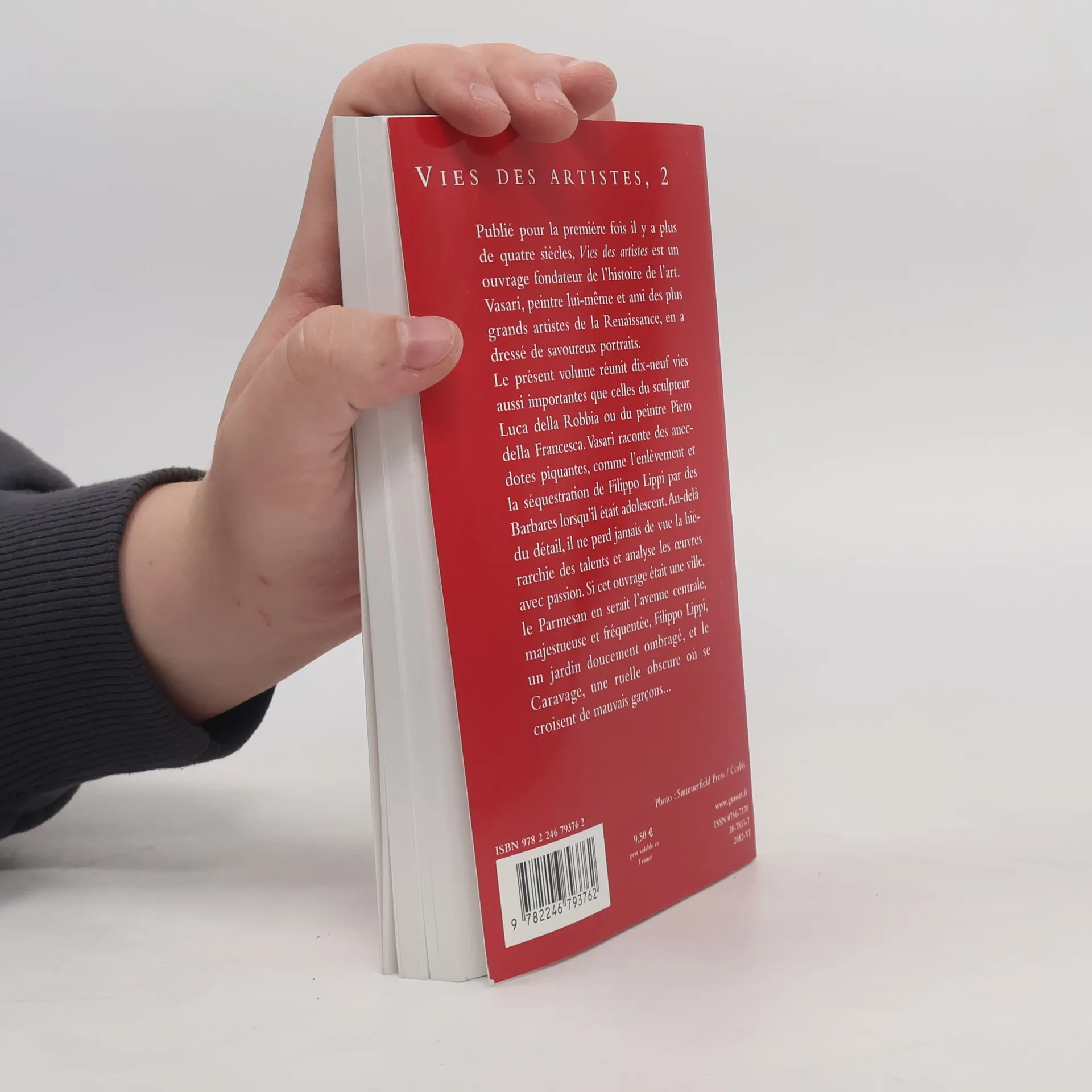 Le premier volume de Vies des artistes, paru en mars 2007 dans les Cahiers Rouges, est la première édition française de poche de ce chef-d'ouvre. Ce second volume est composé de vingt nouvelles biographies d'artistes de tout premier plan. On retrouvera, entre autres, Piero della Francesca, Caravage, Le Parmesan, Primatice ou Bronzino. Cette sélection inédite se fonde une traduction entièrement révisée de la fameuse édition de Leclanché. Annotée, elle comprend une brève présentation de chacun des artistes et une préface inédite.Vies des peintres regroupées dans ce volume :Luca della Robbia, Piero della Francesca, Leon Battista Alberti, Filippo Lippi, Benozzo, Jacopo, Giovanni, Gentile Bellini, Andrea Verrocchio, Piero di Cosimo, Baldassare Peruzzi, Caravage, Maturino, Franciabigio, Le Parmesan, Jacopo Palma et Lorenzo Lotto, Sebastiano del Piombo, Domenico Beccafumi, Pierino da Vinci, Jacopo Pontormo, Daniel de Volterra, Primatice, Bronzino.Edition de Benoît Fuchs.