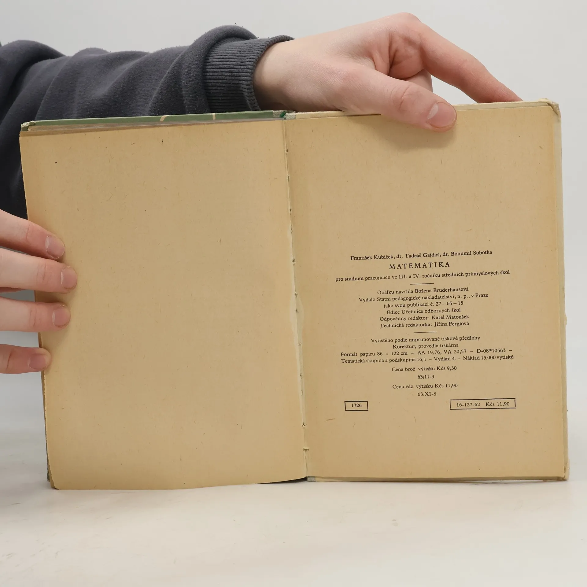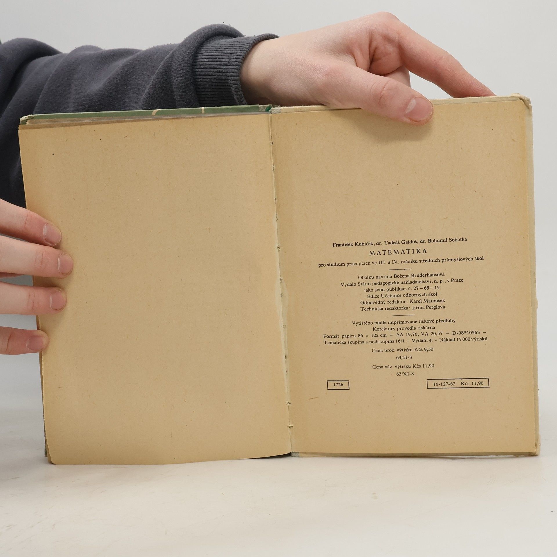 Matematika pro studium pracujících ve III. a IV. ročníku na středních průmyslových školách, František Kubíček, Tadeáš Gajdoš, Bohumil Sobotka