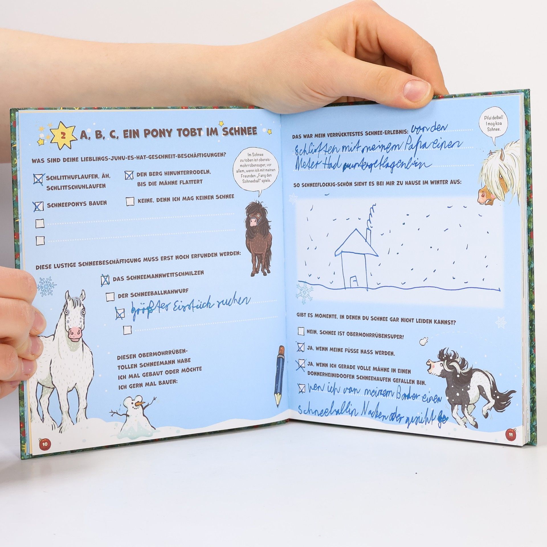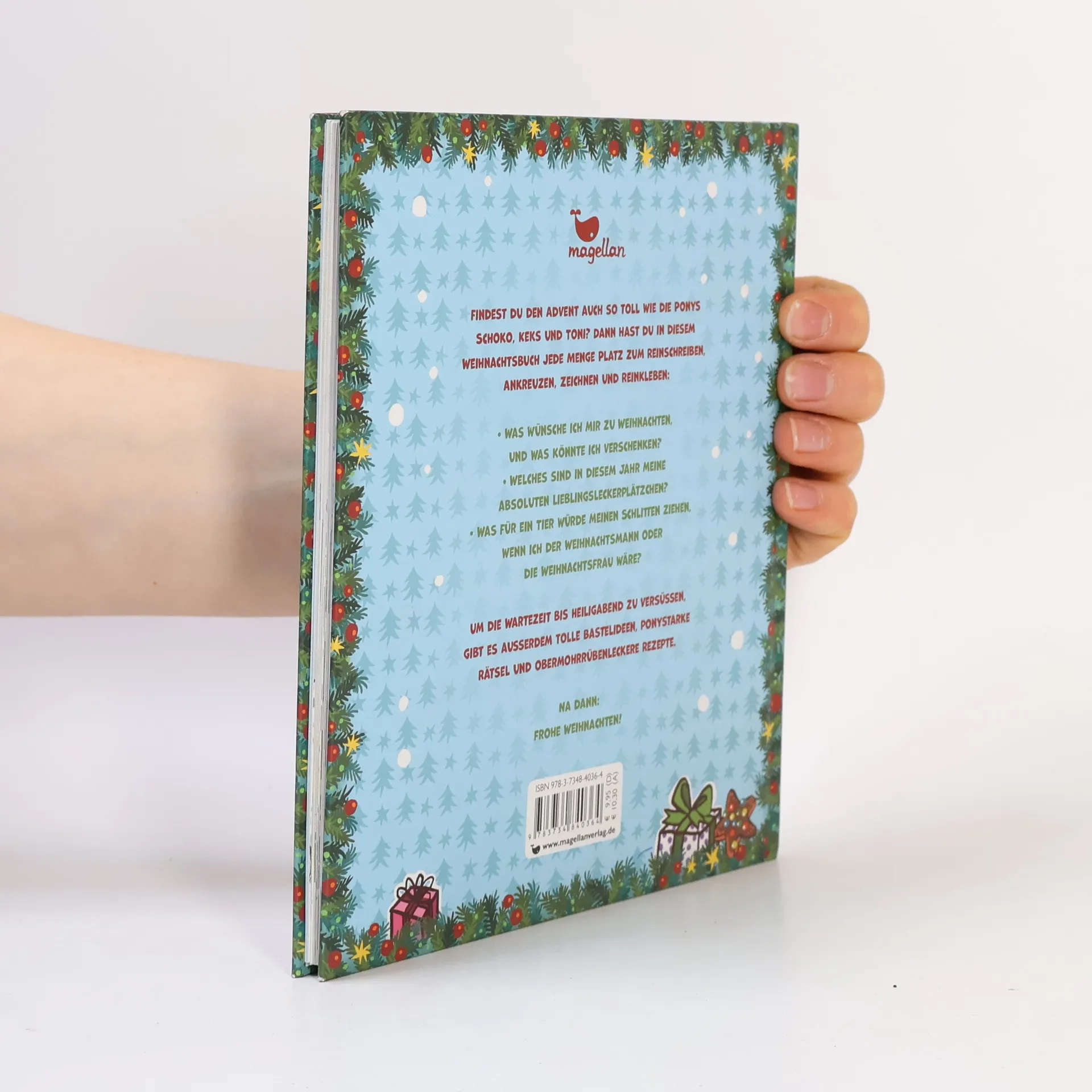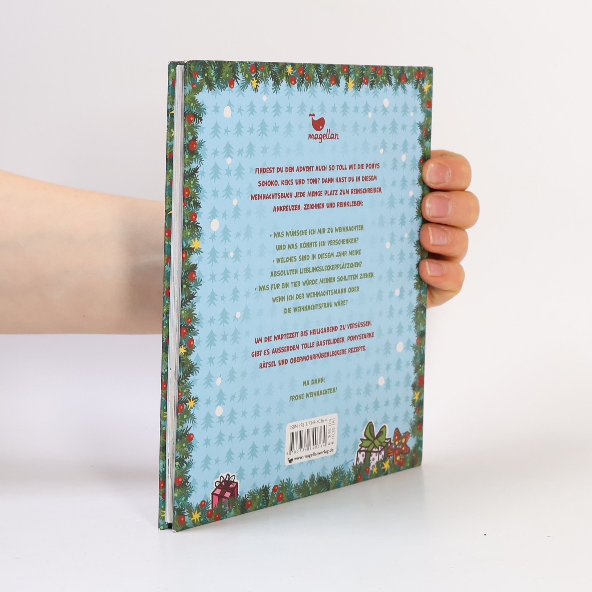 Alle, die den Advent auch so toll finden wie die Ponys Schoko, Keks und Toni, haben in diesem Weihnachtsbuch jede Menge Platz zum Reinschreiben, Ankreuzen, Zeichnen und Reinkleben: - Was wünsche ich mir zu Weihnachten und was könnte ich verschenken? - Welches sind meine absoluten Lieblingsleckerplätzchen? - Was für ein Tier würde meinen Schlitten ziehen, wenn ich der Weihnachtsmann oder die Weihnachtsfrau wäre? Und um die Wartezeit bis Heiligabend zu versüßen, gibt es außerdem kreative Bastelideen, ponystarke Rätsel, obermohrrübenleckere Rezepte und ein exklusives Haferhorde-Abenteuer. Na dann: Frohe Weihnachten!