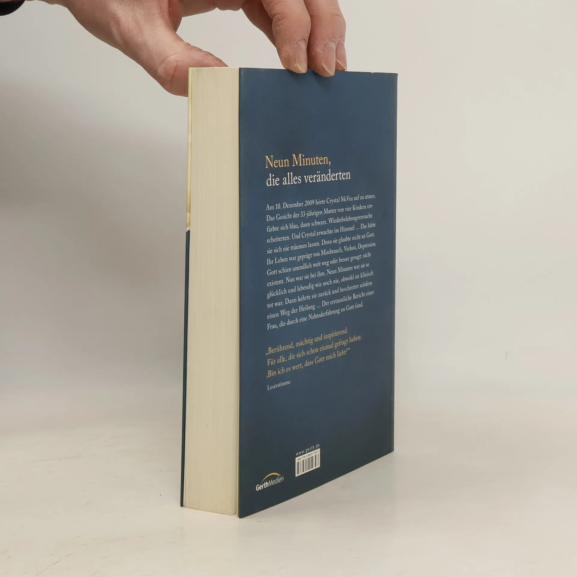 Am 10. Dezember 2009 hörte Crystal McVea auf zu atmen. Das Gesicht der 33-jährigen Mutter von vier Kindern verfärbte sich blau, dann schwarz. Wiederbelebungsversuche scheiterten. Und Crystal erwachte im Himmel ... Das hätte sie sich nie träumen lassen. Denn sie glaubte nicht an Gott. Ihr Leben war geprägt von Missbrauch, Verlust, Depression. Gott schien unendlich weit weg oder besser gesagt: nicht existent. Nun war sie bei ihm. Neun Minuten war sie so glücklich und lebendig wie noch nie, obwohl sie klinisch tot war. Dann kehrte sie zurück und beschreitet seitdem einen Weg der Heilung ... Crystal McVea erzählt, wie ihr Gott inmitten der Verzweiflung nachging und Liebe, Vergebung und Heilung schenkte.