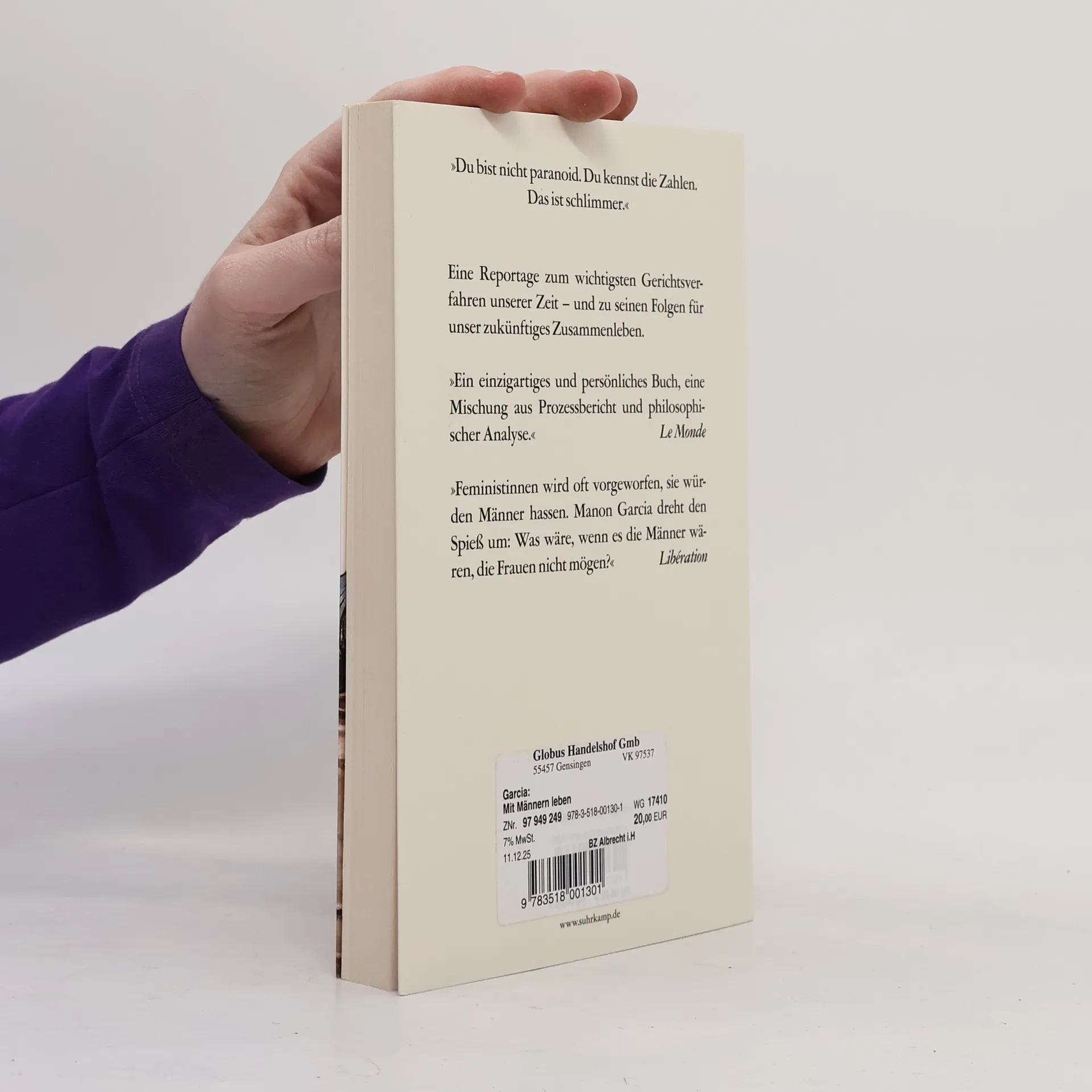 Die monströsen Verbrechen an Gisèle Pelicot, die von ihrem Mann über Jahre betäubt und von ihm und fast 70 anderen Männern vergewaltigt wurde, haben die Welt erschüttert. Das sich anschließende Gerichtsverfahren avancierte zu einem der aufsehenerregendsten Prozesse der letzten Jahrzehnte, nicht nur wegen der Schwere der Schuld, sondern weil weithin klar wurde, dass das dort Verhandelte Millionen von Frauen betrifft. Manon Garcia, eine der wichtigsten Feministinnen der neuen Generation, reiste zum Prozess nach Avignon, um diesen akribisch zu dokumentieren. Sie verbindet ihre präzisen Beobachtungen über den Verlauf des Verfahrens, die Angeklagten und deren Reaktion auf die Vorwürfe mit Überlegungen zur Rolle der Frau in der patriarchalen Gesellschaft. Und sie verknüpft sie mit eigenen Erfahrungen der alltäglichen Gefahr, Opfer zu werden. Angesichts der Abgründe männlicher Gewalt gelangt sie zu der existenziellen Frage: Wie noch mit Männern leben?