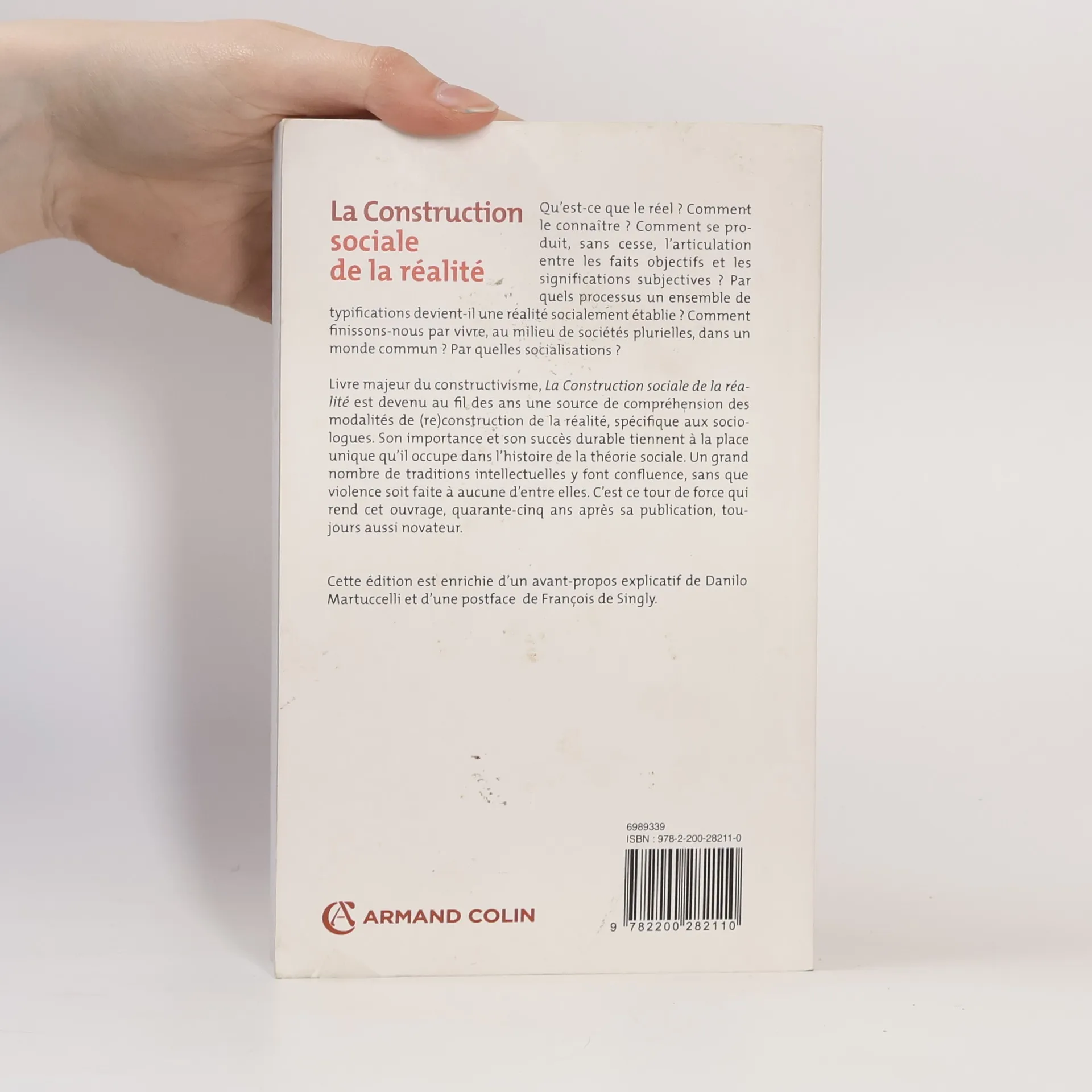 Qu'est-ce que le reel ? Comment le connaitre ? Comment se produit, sans cesse, l'articulation entre les faits objectifs et les significations subjectives ? Par quels processus un ensemble de typifications devient-il une realite socialement etablie ? Comment finissons-nous par vivre, au milieu de societes plurielles, dans un monde commun ? Par quelles socialisations ? Livre majeur du constructivisme, La Construction sociale de la realite est devenu au fil des ans une source de comprehension des modalites de (re)construction de la realite, specifique aux sociologues. Son importance et son succes durable tiennent a la place unique qu'il occupe dans l'histoire de la theorie sociale. Un grand nombre de traditions intellectuelles y font confluence, sans que violence soit faite a aucune d'entre elles. C'est ce tour de force qui rend cet ouvrage, quarante-cinq ans apres sa publication, toujours aussi novateur. Cette edition est enrichie d'un avant-propos explicatif de Danilo Martuccelli et d'une postface de Francois de Singly. Traduction de Pierre Taminiaux, revue par Danilo Martuccelli.