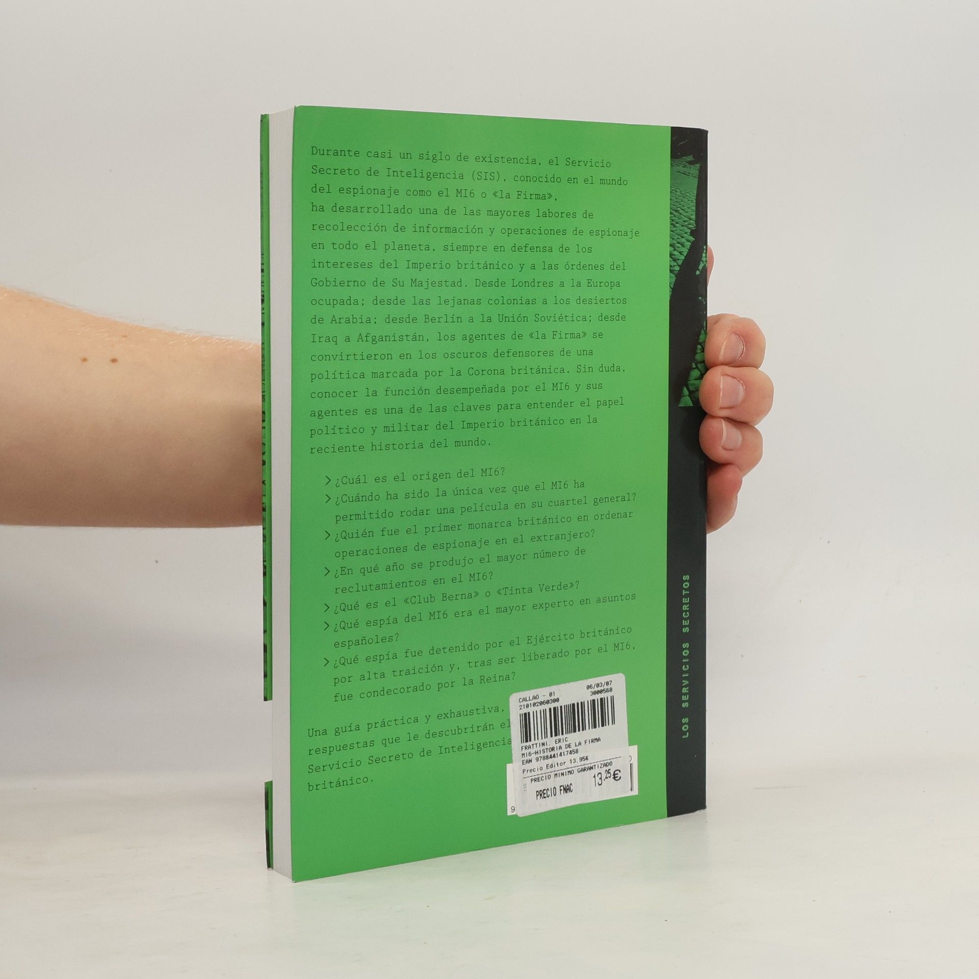 Durante casi un siglo de existencia, el servicio Secreto de Inteligencia (SIS), conocido como el MI6 o “la Firma”, ha desarrollado una de las mayores labores de recolección de información y operaciones de espionaje en todo el planeta, siempre en defensa del Imperio británico y a las órdenes del Gobierno de Su Majestad. Desde Londres a la Europa ocupada; desde las lejanas colonias a los desiertos de Arabia; desde Berlín a la Unión Soviética; desde Iraq a Afganistán, los agentes de “la Firma” se convirtieron en los oscuros defensores de una política marcada por la Corona británica. Sin duda, conocer la función desempeñada por el MI6 y sus agentes es una de las claves para entender el papel político y militar del Imperio británico en la reciente historia del mundo.