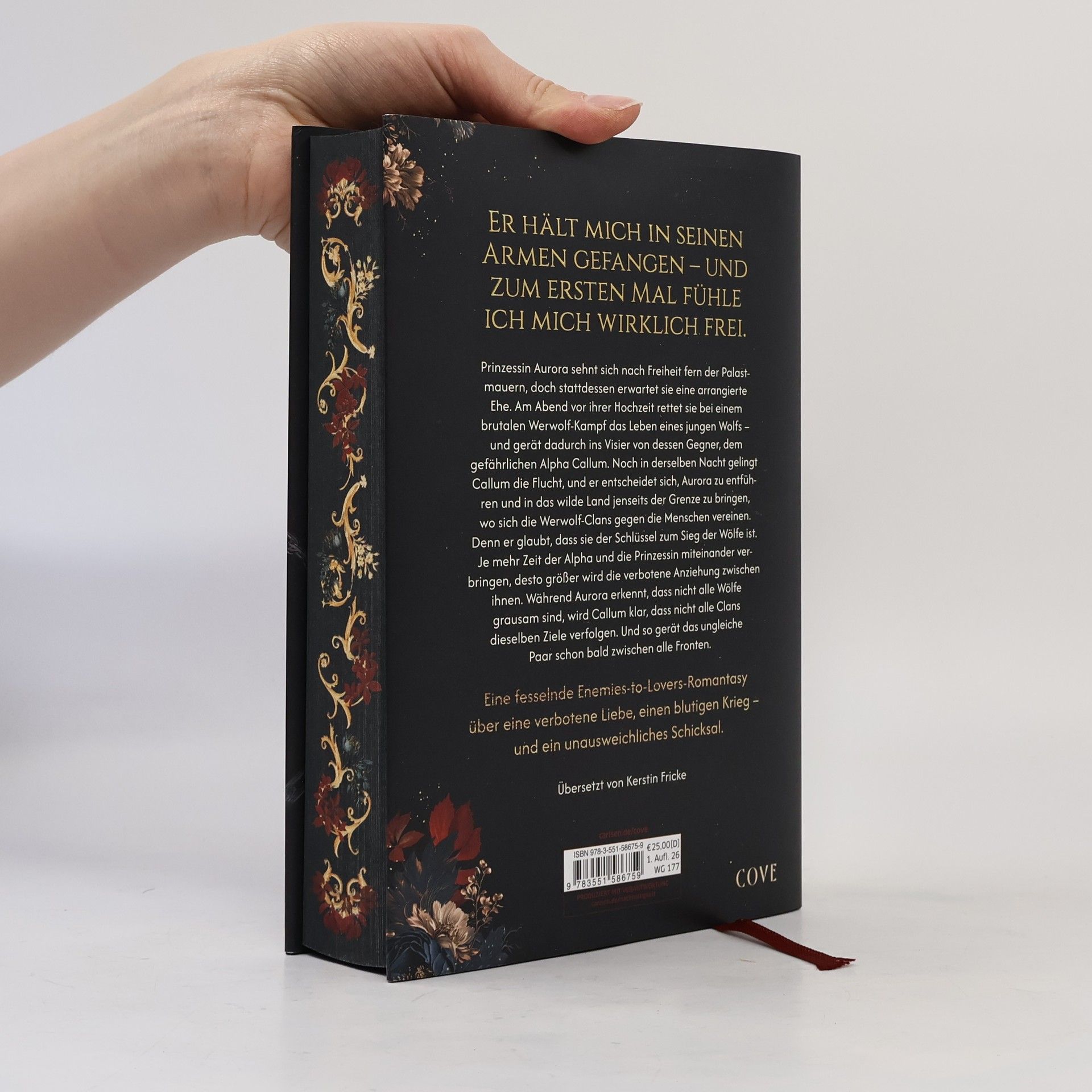 Der Auftakt zur neuen Romantic-Fantasy-Sensation von Lauren Palphreyman – gefährlich, leidenschaftlich und absolut unwiderstehlich. Prinzessin Aurora sehnt sich nach Freiheit fern der Palastmauern, doch stattdessen erwartet sie eine arrangierte Ehe mit einem tyrannischen König. In der Nacht vor ihrer Hochzeit rettet sie bei einem brutalen Werwolf-Kampf das Leben eines jungen Wolfs – und gerät dadurch ins Visier von dessen Gegner, dem gefährlichen Alpha Callum. Noch in derselben Nach gelingt Callum die Flucht, und er entscheidet sich, Aurora zu entführen und in das wilde Land jenseits der Grenze zu bringen, wo sich die Werwolf-Clans gegen die Menschen vereinen. Denn er glaubt, dass sie der Schlüssel zum Sieg der Wölfe ist. Je mehr Zeit der Alpha und die Prinzessin miteinander verbringen, desto größer wird die verbotene Anziehung zwischen ihnen. Während Aurora erkennt, dass nicht alle Wölfe grausam sind, wird Callum klar, dass nicht alle Clans dieselben Ziele verfolgen. Und so gerät das ungleiche Paar schon bald zwischen alle Fronten. Eine fesselnde Enemies-to-Lovers-Romantasy über eine verbotene Liebe, einen blutigen Krieg – und ein unausweichliches Schicksal. Band 1 erscheint als veredeltes Hardcover mit Lesebändchen und hochwertiger Prägung unter dem Schutzumschlag, außerdem mit Motiv-Farbschnitt exklusiv in der ersten Auflage.