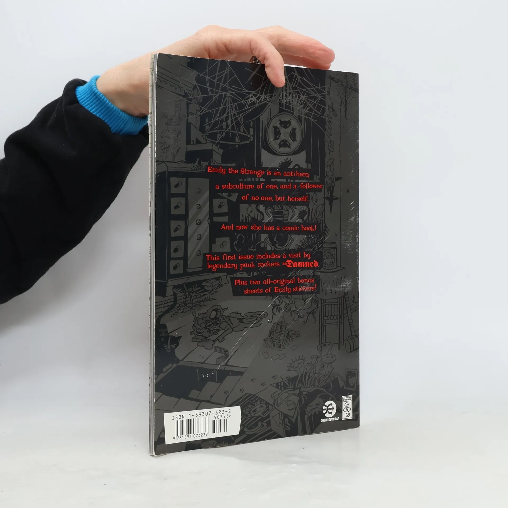 For more than 10 years, pop culture cultists have revered and adored a mysterious, brooding 13 year-old girl named Emily the Strange. Nobody knows much about the young girl with a porcelain face and huge eyes framed by black bangs, and her ever-present brood of black cats only adds to the intrigue - but that hasn't stopped a generation of rabid fans from letting Emily put her spell upon them. Now, for the first time ever, Emily fans will be welcomed into her dark and, well, strange world - a place where kitty friends talk, the ghosts of famous weirdos come out to play, reality is never quite what it seems, and - above all - a place where anyone who's ever been considered a little "strange" themselves will be made to feel right at home. Dark Horse Comics and the creative minds behind Cosmic Debris are thrilled to present the first-ever Emily comic books, published as deluxe single issues with all new stories and art. Each issue of Emily comics will feature 48 pages of black, white, and red art (with the occasional outburst of full-color freakouts!), illustrating a wacky range of Emily stories.