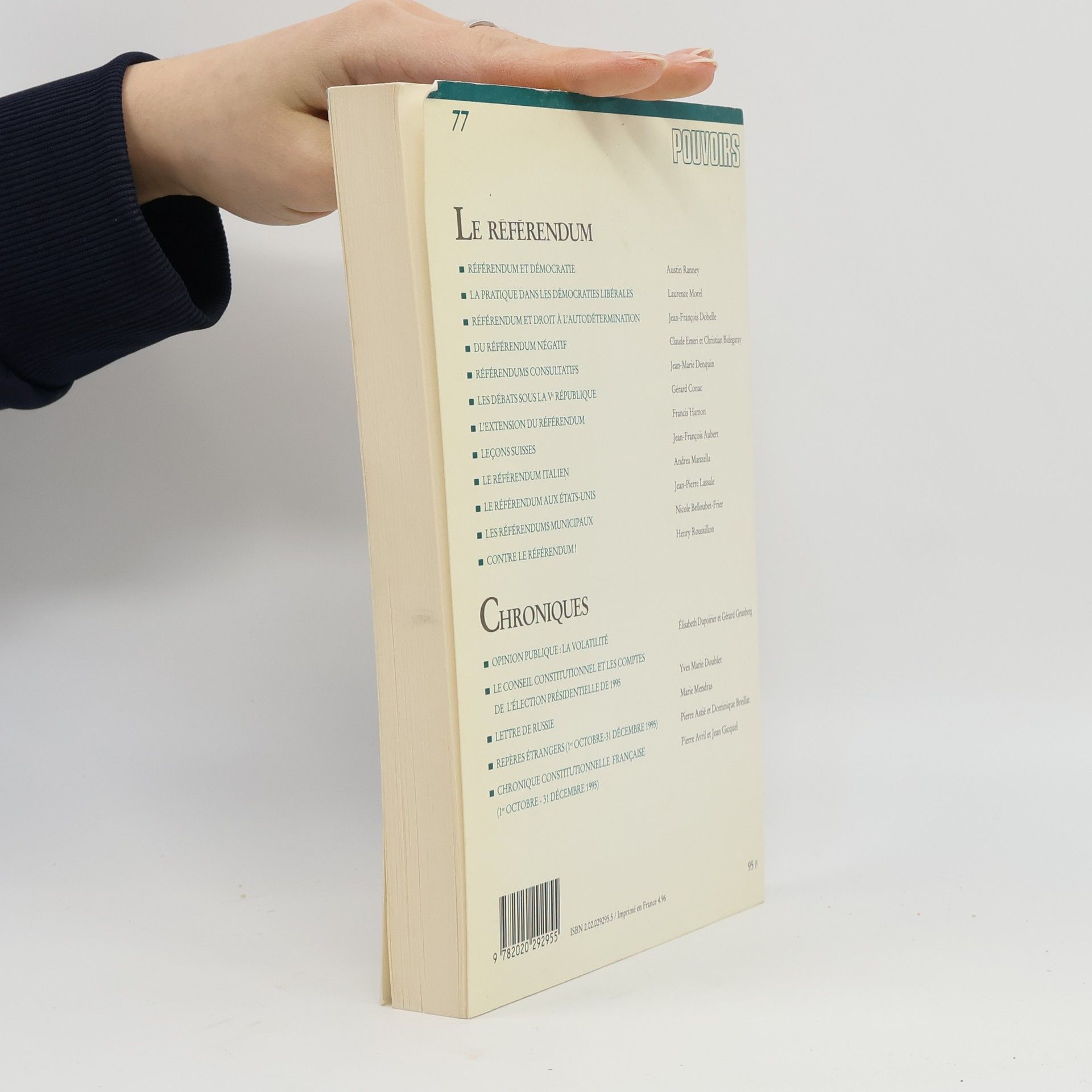 Pouvoirs - 77: Le référendum, Austin Ranney, Laurence Morel, Jean-François Dobelle, Claude Emeri, Christian Bidegaray, Jean-Marie Denquin, Gérard Conac, Francis Hamon, Jean Francois Aubert, Andrea Manzella, Jean-Pierre Lassale, Nicole Belloubet-Frier, Henry Roussillon