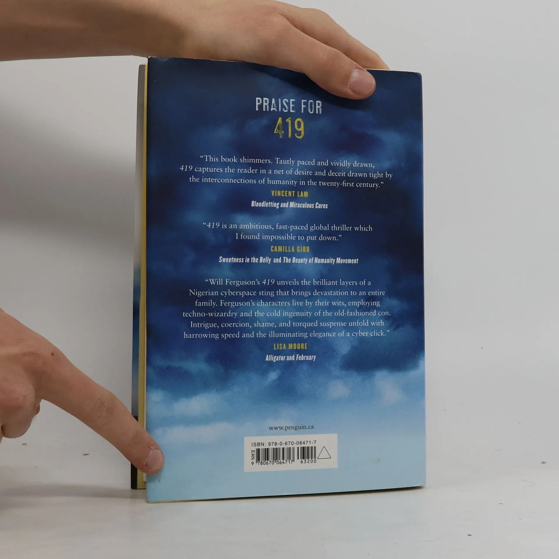 A startlingly original tale of heartbreak and suspense A car tumbles down a snowy ravine. Accident or suicide? On the other side of the world, a young woman walks out of a sandstorm in sub-Saharan Africa. In the labyrinth of the Niger Delta, a young boy learns to survive by navigating through the gas flares and oil spills of a ruined landscape. In the seething heat of Lagos City, a criminal cartel scours the internet looking for victims. Lives intersect, worlds collide, a family falls apart. And it all begins with a single email: “Dear Sir, I am the son of an exiled Nigerian diplomat, and I need your help ...” 419 takes readers behind the scene of the world’s most insidious internet scam. When Laura’s father gets caught up in one such swindle and pays with his life, she is forced to leave the comfort of North America to make a journey deep into the dangerous back streets and alleyways of the Lagos underworld to confront her father’s killer. What she finds there will change her life forever...