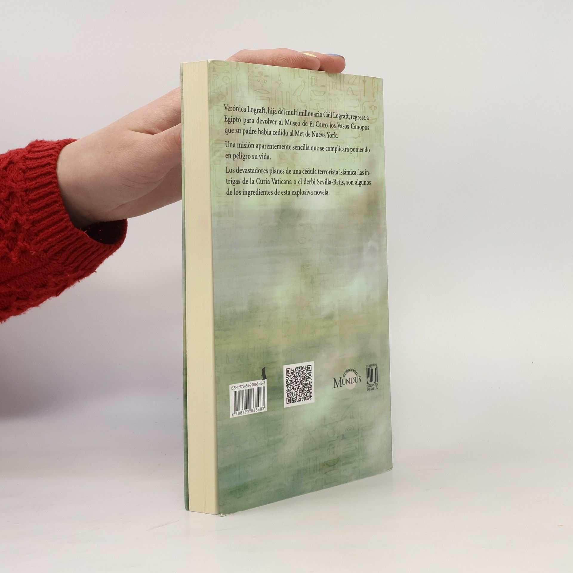 Verónica Lograft, hija del multimillonario Cail Lograft, regresa a Egipto para devolver al Museo de El Cairo los Vasos Canopos que su padre había cedido al Met de Nueva York. Una misión aparentemente sencilla que se complicará poniendo en peligro su vida. Los devastadores planes de una cédula terrorista islámica, las intrigas de la Curia Vaticana o el derbi Sevilla-Betis, son algunos de los ingredientes de esta explosiva novela.