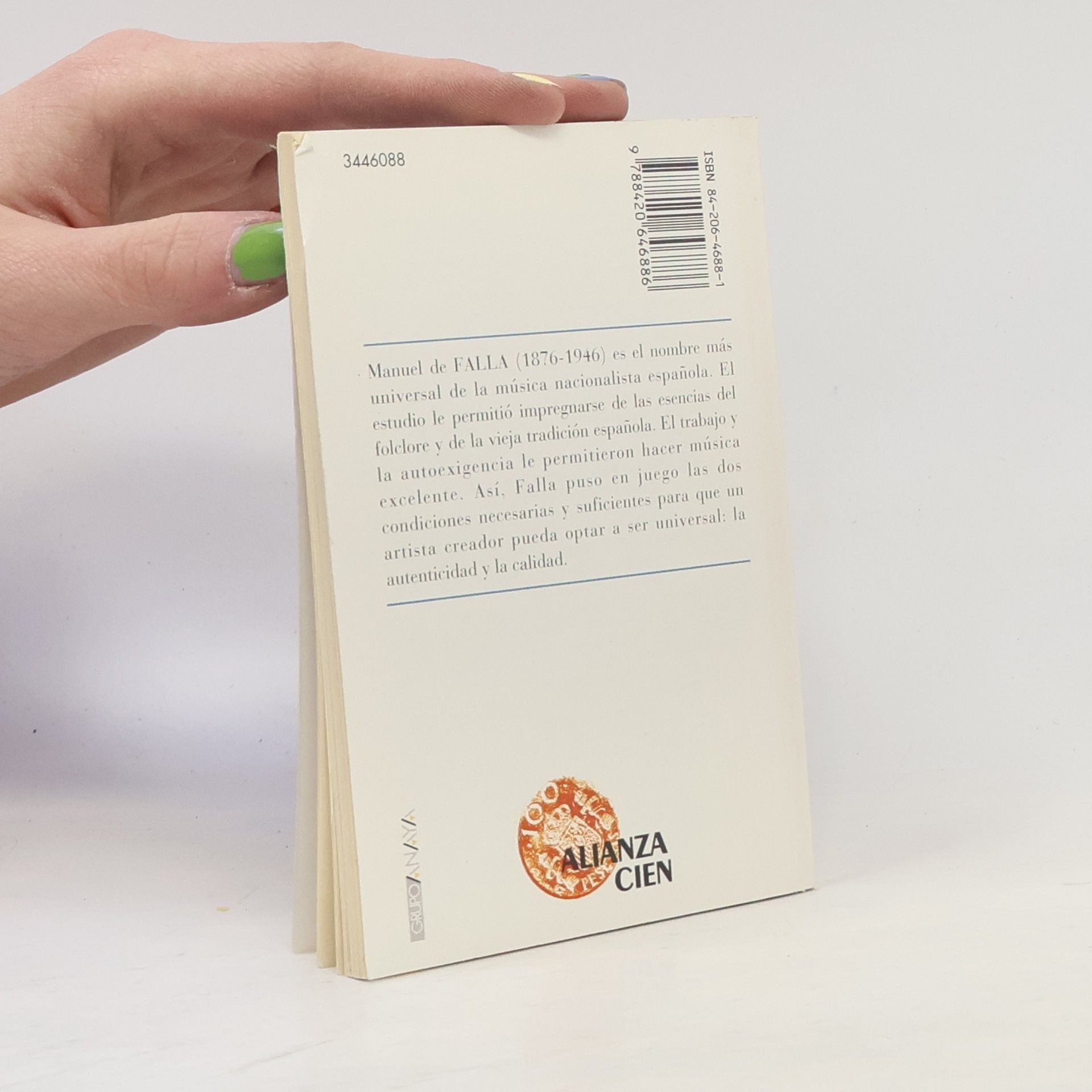 Madrid. 15 cm. 63 p. Encuadernación en tapa blanda de editorial ilustrada. Colección 'Alianza cien', numero coleccion(88). García del Busto, José Luis 1947-. Falla, Manuel de. 1876-1946 .. Este libro es de segunda mano y tiene o puede tener marcas y señales de su anterior propietario. 8420646881