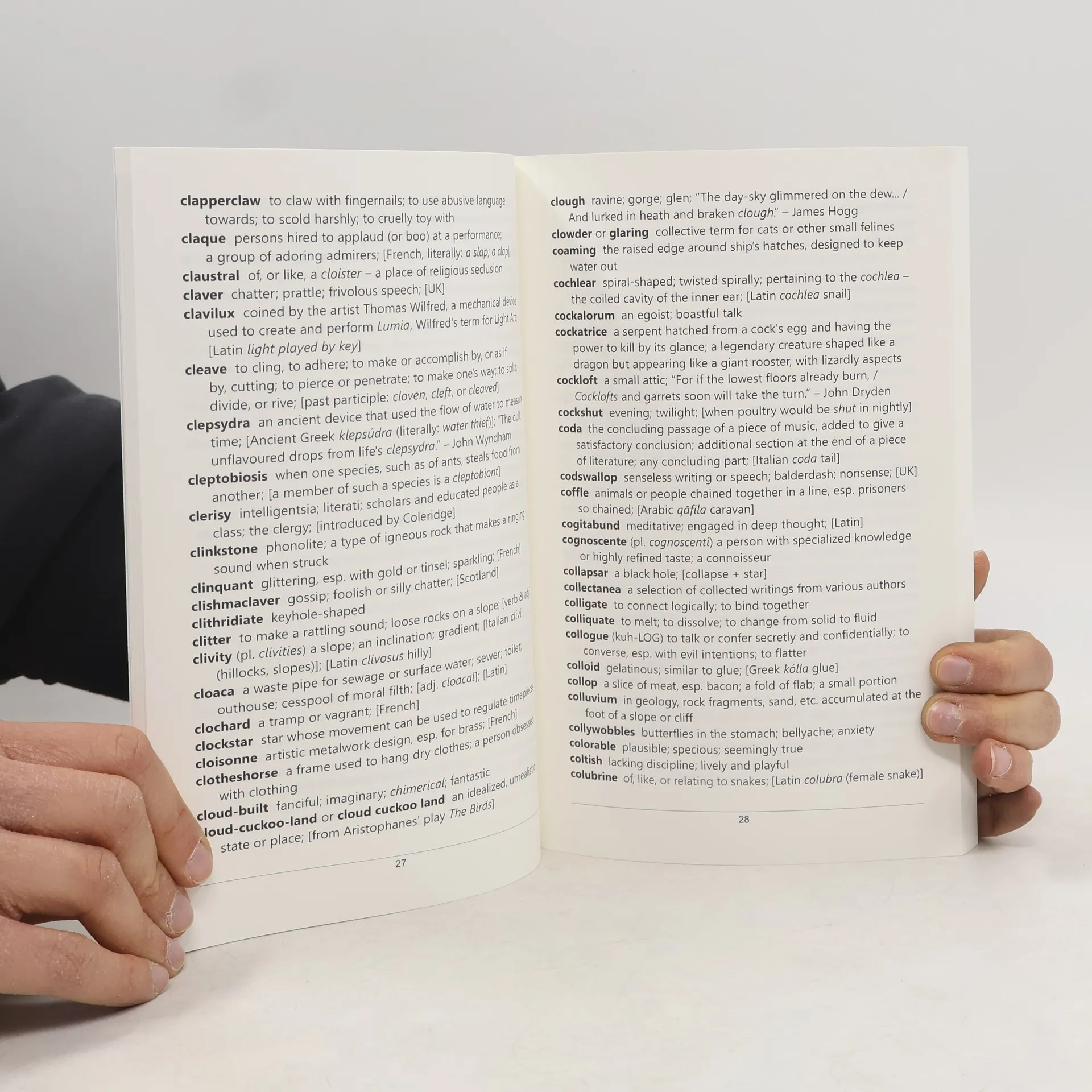 A dictionary of English's 3500 most interesting and/or beautiful words. Many are obscure words -- this book is not useful for foreigners learning English, but best enjoyed by fluent or native speakers. A book for word-lovers who enjoy learning and appreciating more of the English language. Includes some poetical quotes showing usage and select etymologies.