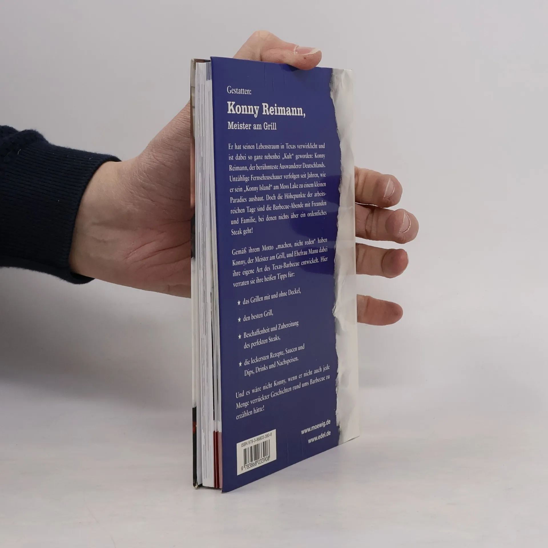 Was isst der Texaner am liebsten? Natürlich - ein ordentliches Steak, möglichst vom Grill. Das geht Auswandererfamilie Reimann, berühmt geworden durch Ihre Auftritte bei RTL, nicht anders. Konny Reimann, der Meister am Grill, hat getreu seinem Motto „machen, nicht reden“ seine eigene Art des Barbecue entwickelt. Im Buch erklärt er, wie das geht, was man beim Grillen alles beachten muss, wie das Fleisch beschaffen sein muss und welches sich am besten eignet. Natürlich hat er auch jede Menge Rezepte parat, die er hier verrät. Klar, dass es Steakrezepte gibt, aber auch solche für gegrillten Fisch und Gemüse, für die dazugehörigen Salate und Saucen. Seine Frau Manu steuert leckere Nachspeisenrezepte bei. Und es wäre nicht Konny, wenn er nicht auch jede Menge verrückte Geschichten rund ums Barbecue zu erzählen hätte!