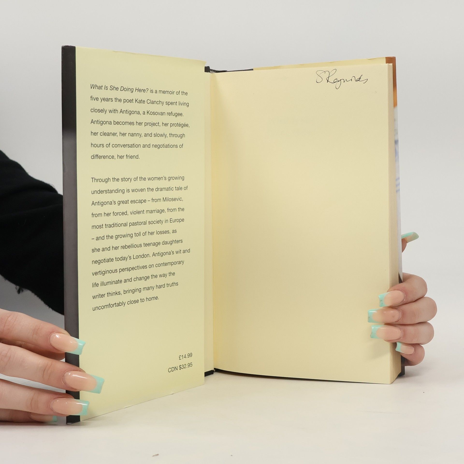 What Is She Doing Here? is a memoir of the five years the poet Kate Clanchy spent living closely with Antigona, a Kosovan refugee. Antigona becomes her project, her protégée, her cleaner, her nanny, and slowly, through hours of conversation and negotiations of difference, her friend. Through the story of the women`s growing understanding is woven the dramatic tale of Antigona`s great escape - from Milosevic, from her forced, violent marriage, and from the most traditional pastoral society in Europe - and the growing toll of her losses, as she and her rebellious teenage daughters negotiate London. Antigona`s wit and vertiginous perspectives on contemporary life illuminate and transform the way the writer thinks, bringing many hard truths uncomfortably close to home. `Kate Clanchy has written not just a heart-stopping story, but one that is essential for our times.` Anne Enright