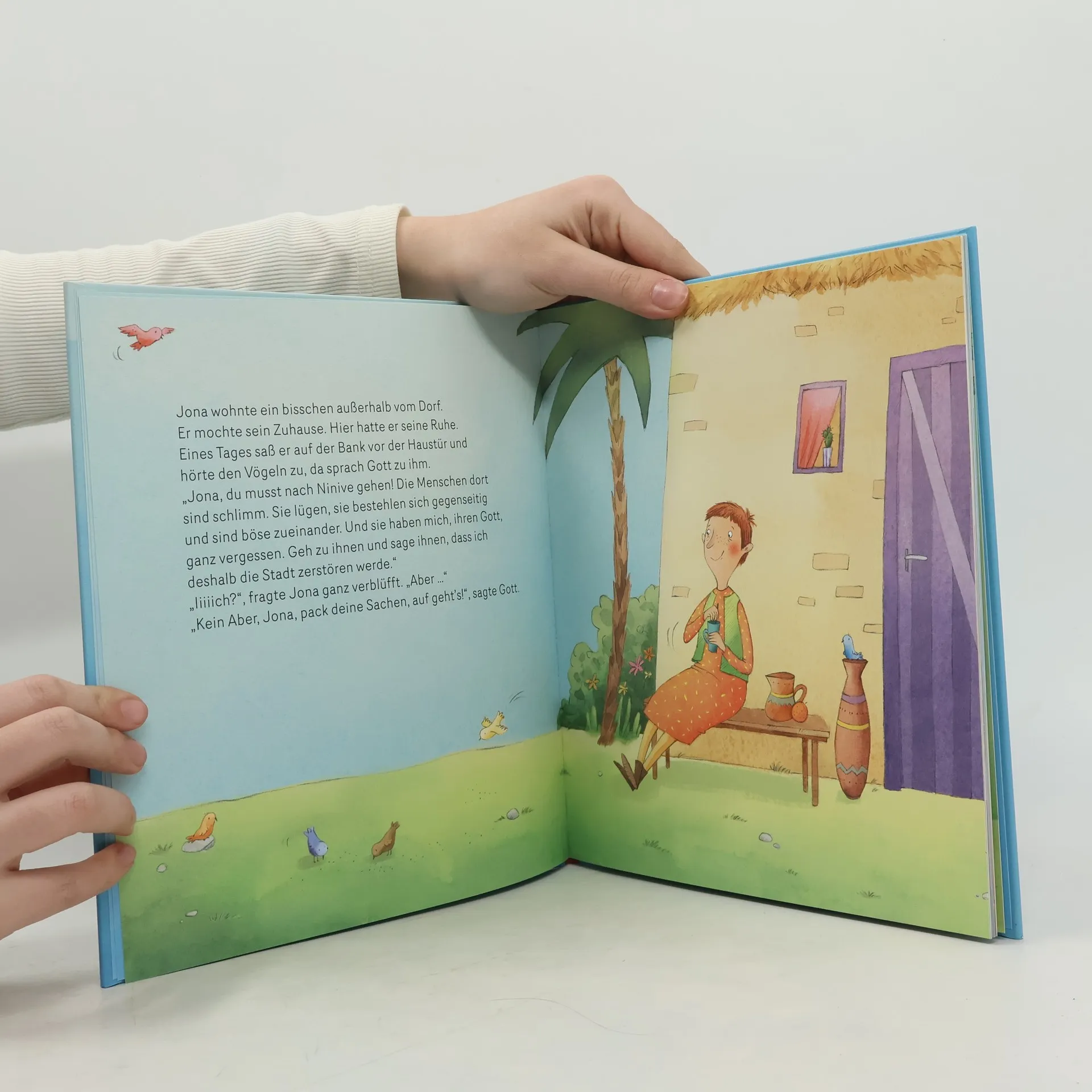 Jona bekommt einen Auftrag von Gott: Er soll zu den Menschen von Ninive gehen und ihnen sagen, dass ihr Untergang bevorsteht. Aber weil er Angst davor hat, versucht Jona in einem Boot über das Meer zu fliehen. Als jedoch ein Sturm das Schiff zu zerbrechen droht, merkt er, dass man vor dem Auftrag Gottes nicht davonlaufen kann, und stürzt sich ins Meer. Und hier erfährt Jona, dass Gott nicht nur Aufträge erteilt, sondern auch rettet - selbst wenn man dabei in einem Fischbauch landet