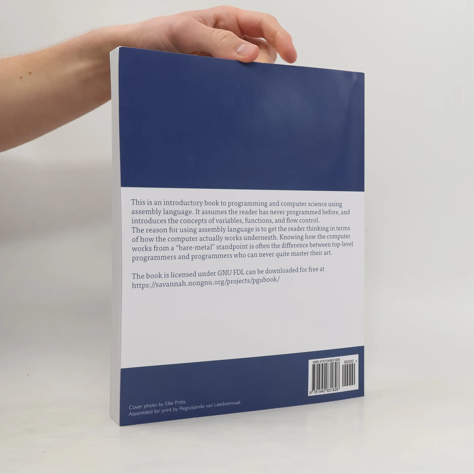This is an introductory book to programming and computer science using assembly language. It assumes the reader has never programmed before, and introduces the concepts of variables, functions, and flow control.The reason for using assembly language is to get the reader thinking in terms of how the computer actually works underneath. Knowing how the computer works from a "bare-metal" standpoint is often the difference between top-level programmers and programmers who can never quite master their art.The book is licensed under GNU FDL.