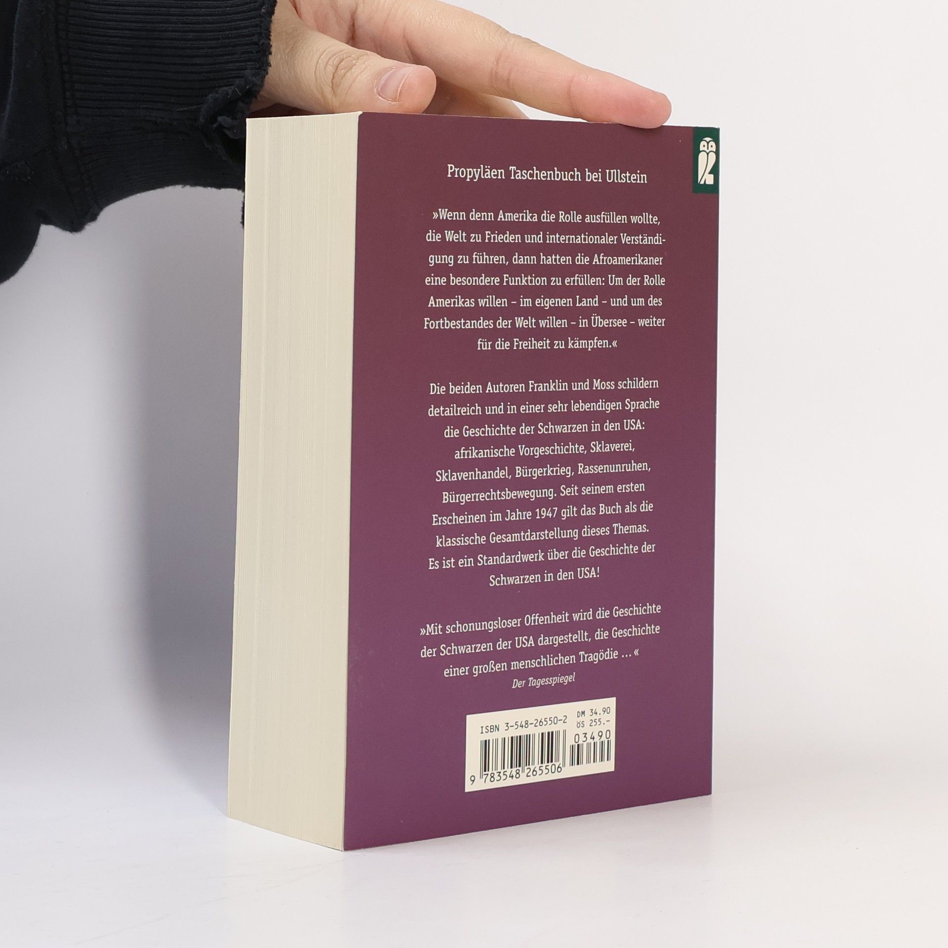 Die vorliegende aktualisierte und erweiterte Fassung von Franklins Standardwerk zur Geschichte der Sklaverei beruht auf der Neuausgabe von 1994 und enthält neben neuen Kapiteln auch eine vollständig überarbeitete Bibliographie. Franklin skizziert zunächst die afrikanische Vorgeschichte der Schwarzen, ihre gewaltsame Entwurzelung und die menschenverachtenden Institution der Sklaverei. Er betrachtet die Rolle der Schwarzen in der Amerikanischen Revolution, den Beginn der Jim-Crow-Gesetzgebung und die Segregation nach dem Bürgerkrieg. Franklins Studie dehnt sich mit zahlreichen Dokumenten bis in die Zeit der Bürgerrechtsbewegung und zeichnet auch den starken Einfluß der afrikanischen Kultur auf die Moderne in den USA und Europa nach.