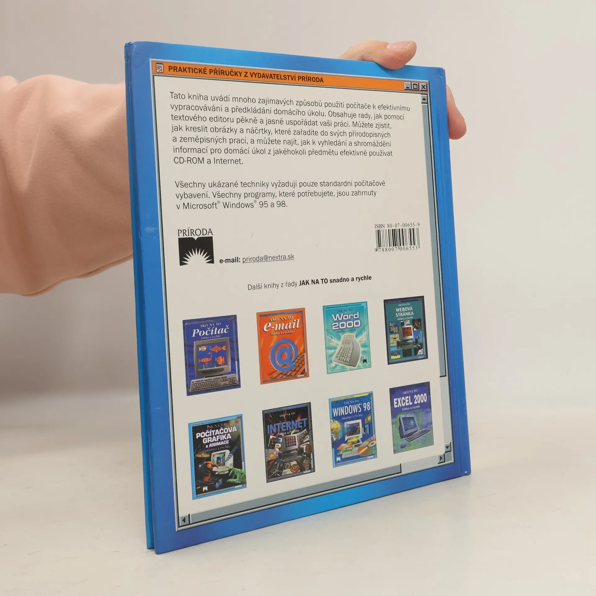 Bohatě ilustrovaná publikace seznamuje žáky a studenty s možnosti využití počítače při vypracovávání domácích úkolů. Nechybí ani informace o potřebném počítačovém vybavení (hardware + software), návody, jak programy spustit či jak používat klavesnici. (www.mlp.cz)