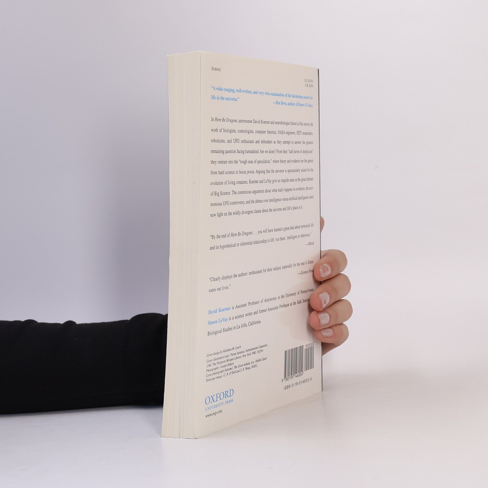 In Here Be Dragons , astronomer David Koerner and neurobiologist Simon LeVay offer a scientifically compelling and colorful account of the search for life beyond Earth.The authors survey the work of biologists, cosmologists, computer theorists, NASA engineers, SETI researchers, roboticists, and UFO enthusiasts and debunkers as they attempt to answer the greatest remaining question facing humankind: Are we alone? From their "safe haven of skepticism" the authors venture into the "rough seas of speculation," where theory and evidence run the gamut from hard science to hocus pocus. Arguing that the universe is spectacularly suited for the evolution of living creatures, Koerner and LeVay give us ringside seats at the great debates of Big Science. The contentious arguments about what really happens in evolution, the acrimonious UFO controversy, and the debate over intelligence versus artificial intelligence shed new light on the wildly divergent claims about the universe and life's place in it.
