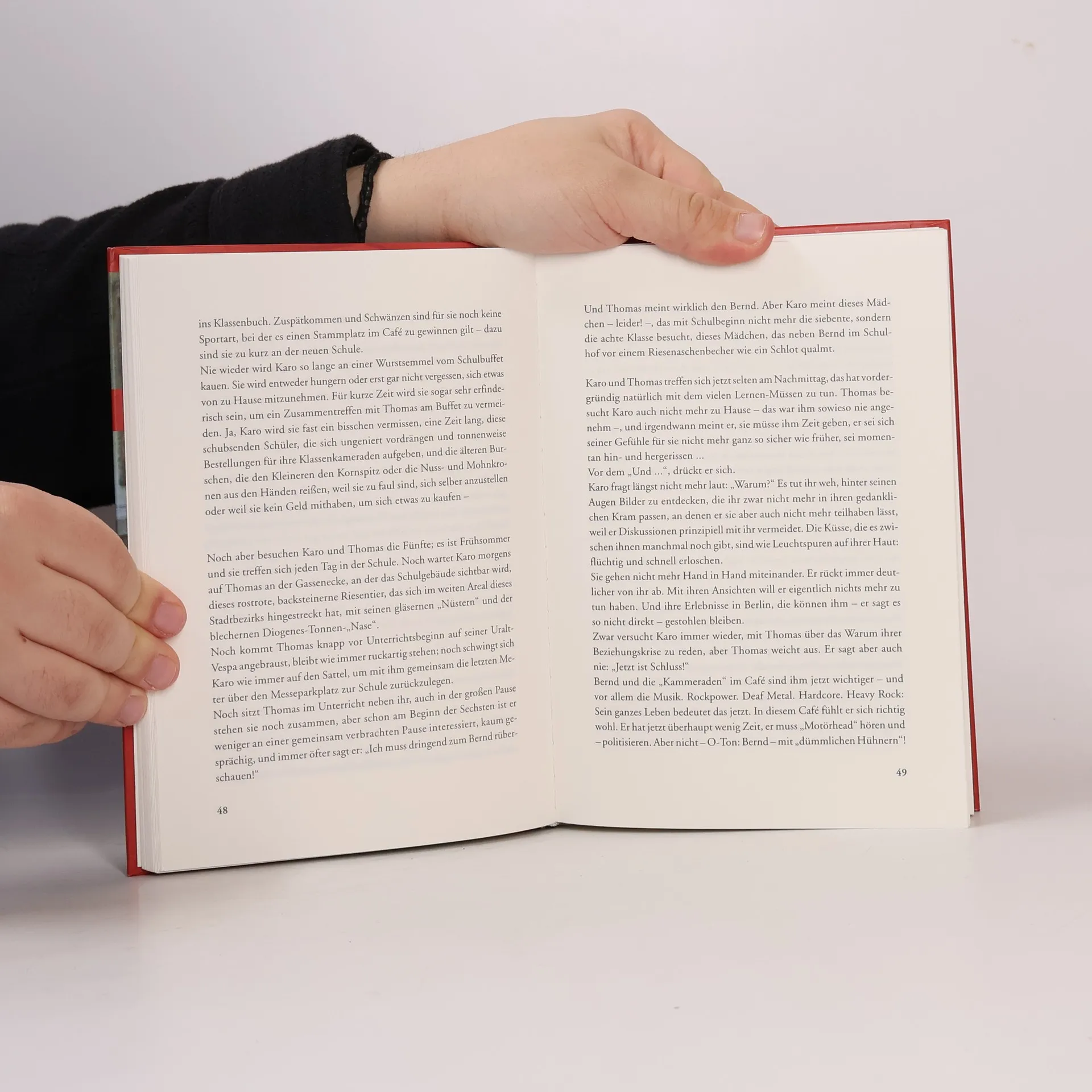 Als Karo sich in Thomas verliebt, verändert sich ihr Leben schlagartig: Plötzlich ist sie nicht mehr das liebe kleine Mädchen, das die Vorstellungen seiner wohlhabenden Eltern erfüllen soll. Aus der kuscheligen Traumwelt ihres Jungmädchenzimmers steigt sie auf Thomas' Motorrad und begibt sich in die ganz andere, rasante Traumwelt des Raves und coolen Sprüche. Das Erwachen ist bitter. Die Trennung von Thomas, der in die Neonaziszene abgeglitten ist, hat Karo noch nicht verwunden, da stellt sich ihr ein viel wichtigeres Problem: Sie bemerkt, dass sie schwanger ist.