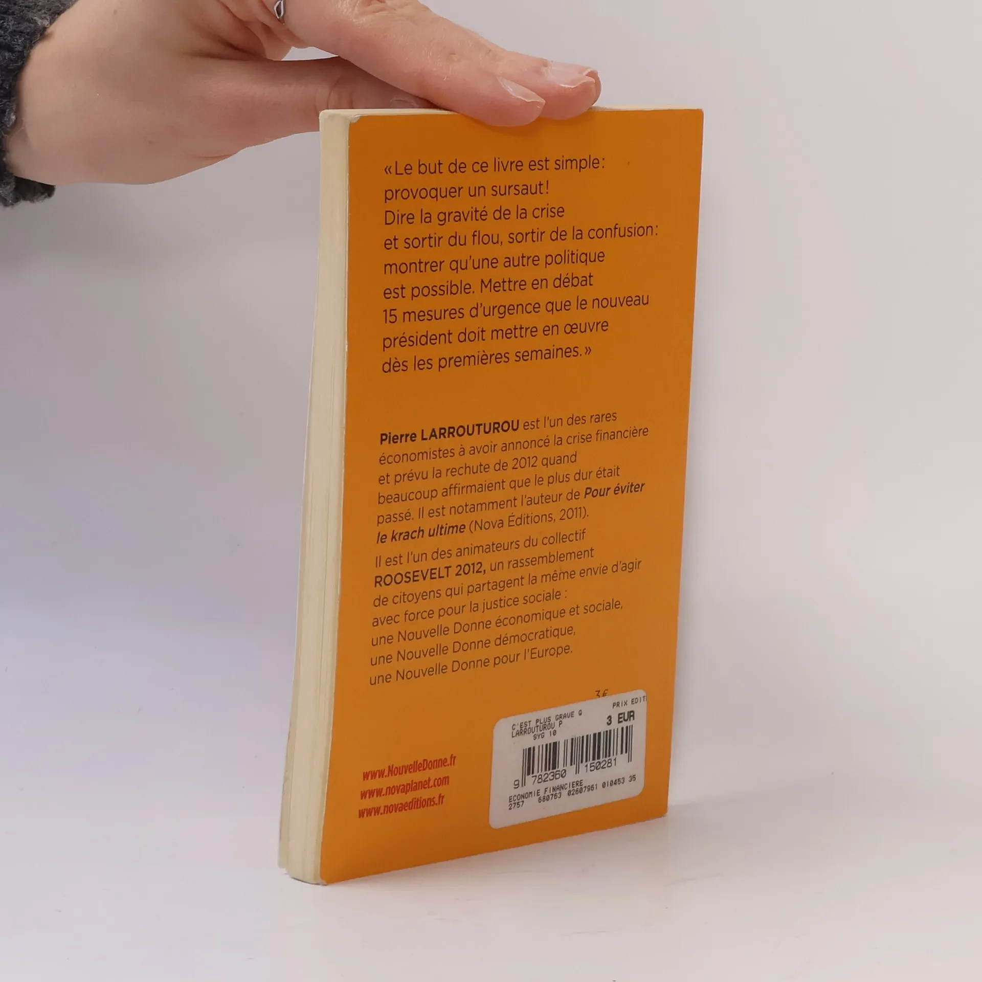 "Le but de ce livre est simple: provoquer un sursaut ! Dire la gravité de la crise et sortir du flou, sortir de la confusion: montrer qu'une autre politique est possible. Mettre en débat 15 mesures d'urgence que le nouveau président doit mettre en oeuvre dès les premières semaines."