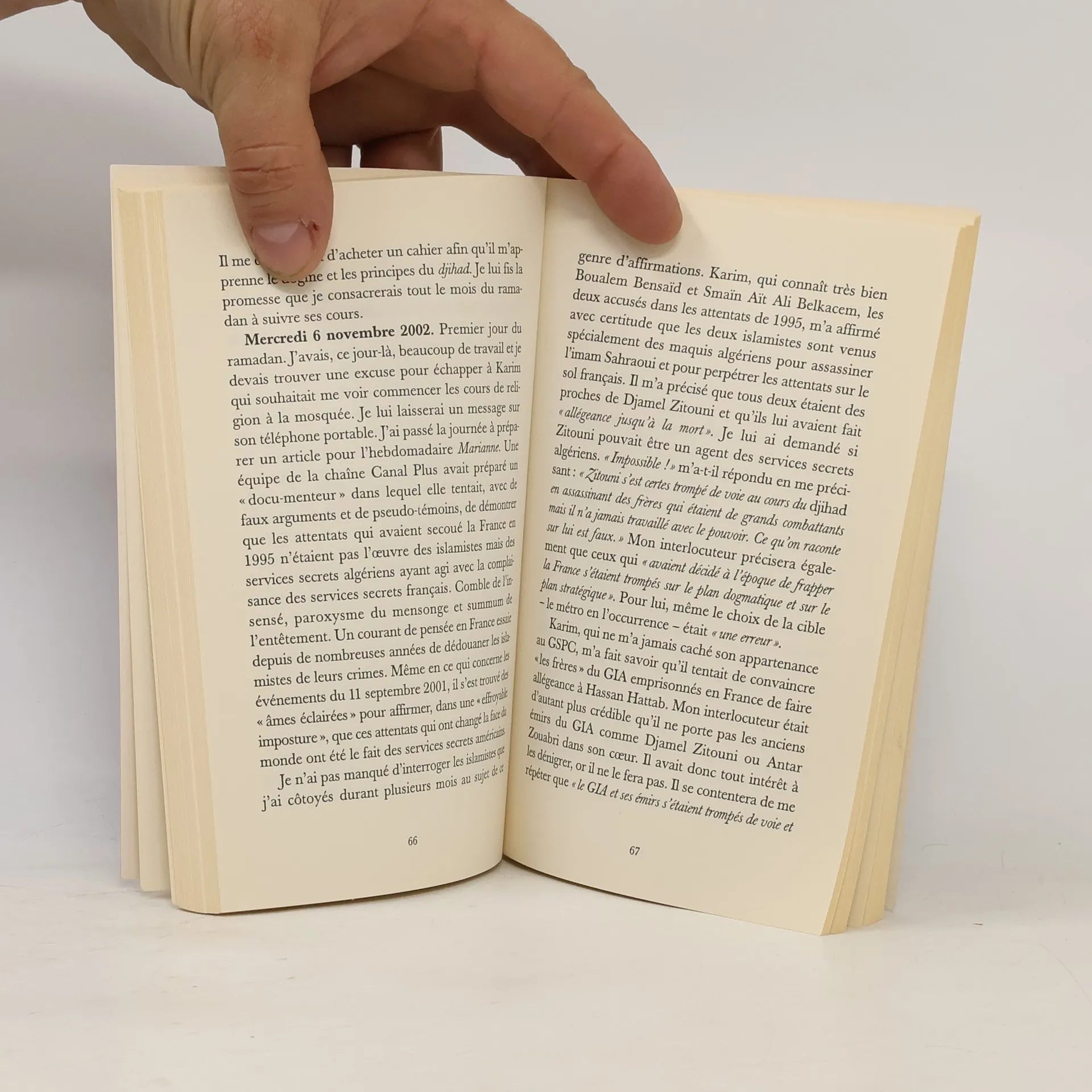Par un pur hasard, Mohamed Sifaoui a rencontré à Paris un Algérien qui avait, au cours des années quatre-vingt, fréquenté le même lycée que lui. Karim Bourti est devenu un islamiste radical, un terroriste. Au fil des jours, ce dernier lui présente ses amis, ses " frères " et l'auteur découvre des choses surprenantes. Karim vient de purger une peine de prison, il avait été arrêté en 1998 et accusé de préparer avec d'autres des attentats terroristes. Pendant plus de trois mois, Mohamed Sifaoui a tenu un journal quotidien dans lequel il a noté les moindres détails. Il a également filmé ses contacts - en caméra cachée - pour deux reportages qui seront diffusés sur des chaînes françaises. Ses nouveaux " frères " lui ont expliqué quelles seraient les cibles éventuelles en France, l'un d'entre eux lui disant : " Nous devons avoir le Coran dans une main, le kalachnikov dans l'autre ". Tentant de le récupérer, ils l'ont chargé de leur trouver des financements, de faire de la propagande et de leur fournir des informations sur des personnalités algériennes dont le mufti de Paris, Dalil Boubekeur et celui de Marseille, Soheib Bencheikh en vue, diront-ils, " d'une possible élimination de dignitaires algériens ", bref autant de révélations fracassantes qui font de cette enquête le premier regard porté par un journaliste sur " l'intimité " d'une cellule terroriste. Un document exceptionnel et ô combien inquiétant.