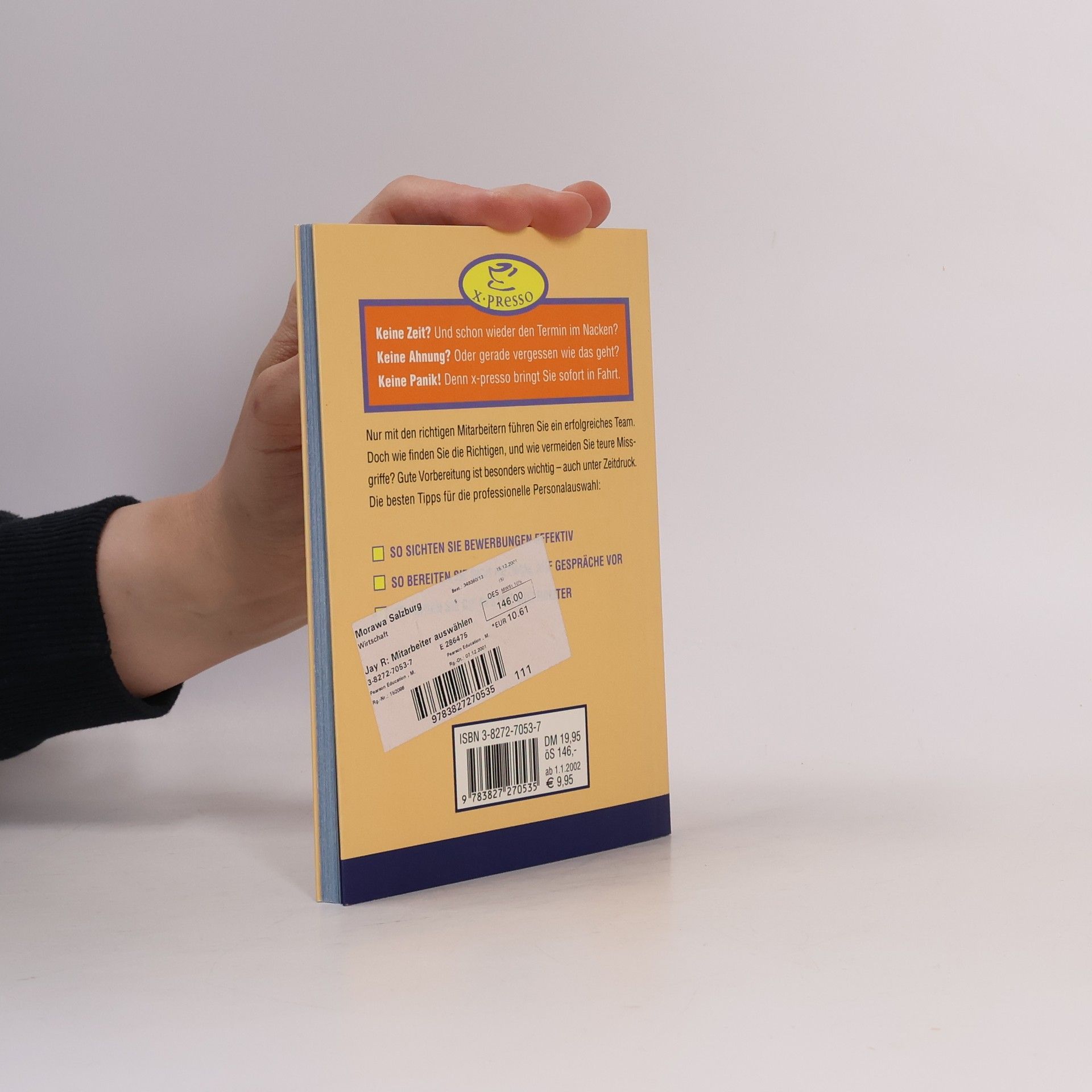Keine Zeit? Und schon wieder den Termin im Nacken? Keine Ahnung? Oder gerade vergessen, wie das geht? Keine Panik! x- presso bringt Sie sofort in Fahrt. Mit den Mitarbeitern steht und fällt der Erfolg eines Unternehmens. Wie finden Sie die richtigen, und wie vermeiden Sie teure Missgriffe? Gute Vorbereitung ist wichtig- auch unter Zeitdruck. Die besten Tipps für die professionelle Personalauswahl: So sichten Sie Bewerbungen effektiv. So bereiten Sie sich optimal auf Gespräche vor. So finden Sie die besten Mitarbeiter. x-presso: Denn alles andere dauert zu lang. Ros Jay ist Expertin für Marketing, Kommunikation und Management. "
