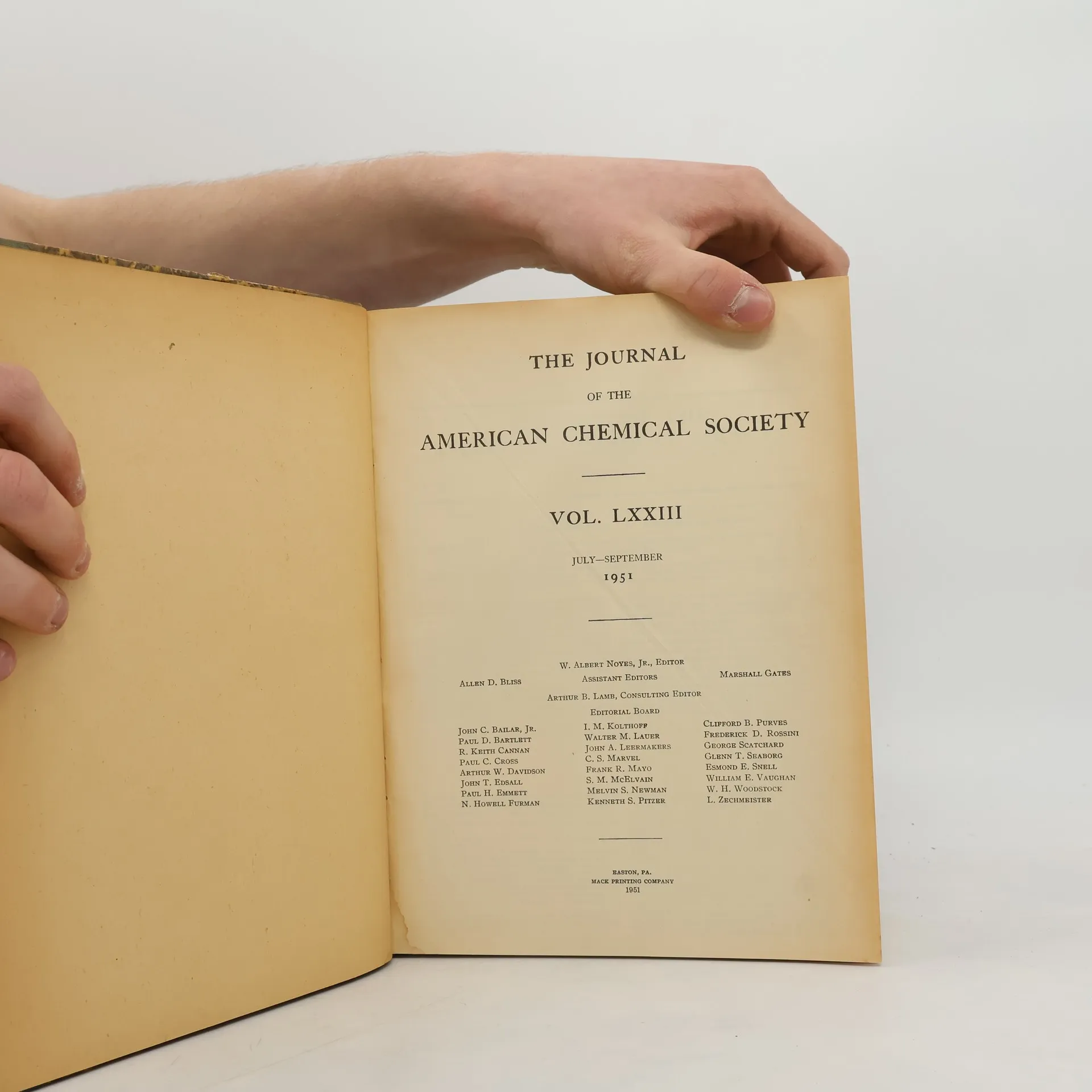 The Journal of the American Chemical Society. Vol. LXXIII