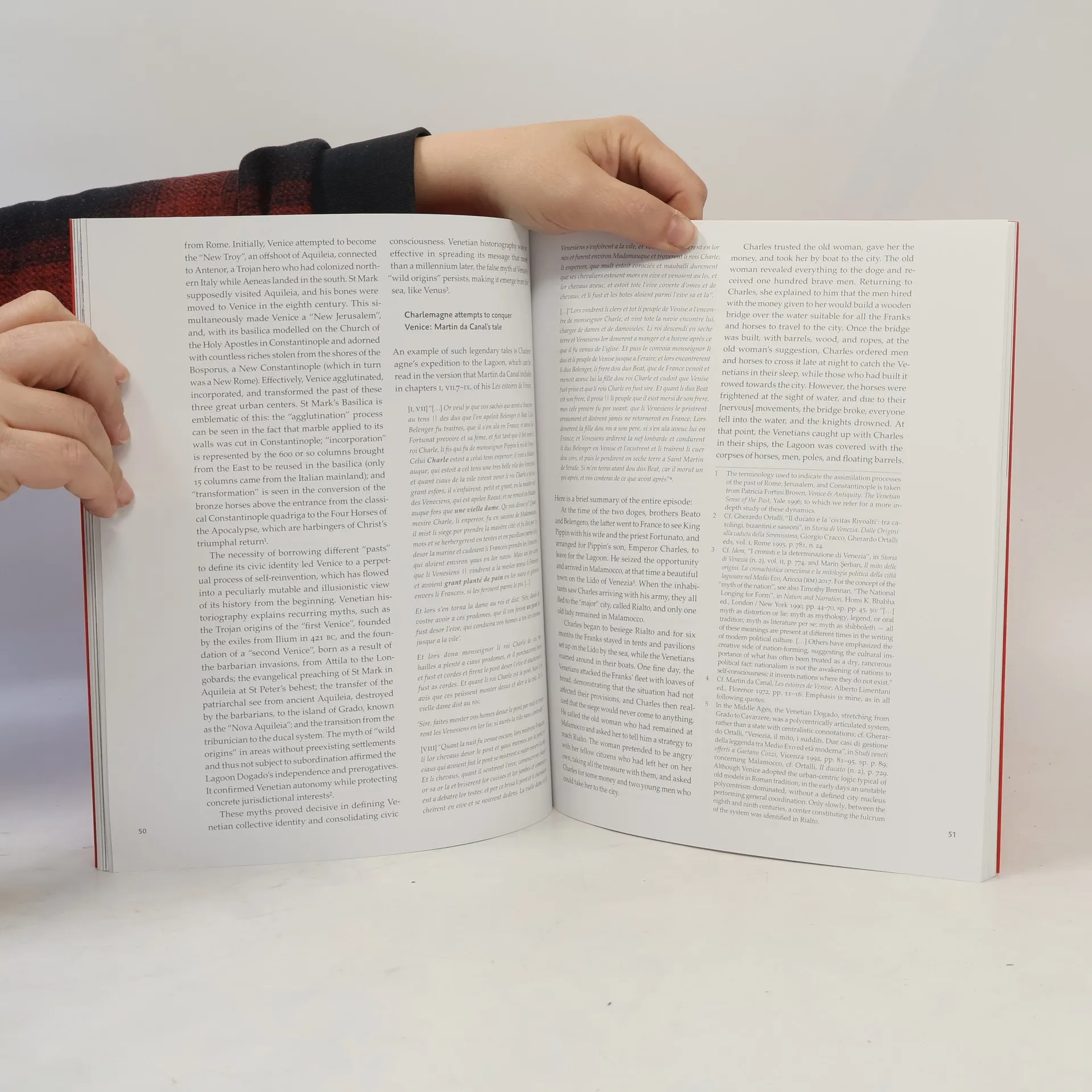 By the late Middle Ages, Venice became the main stage of a national and international myth: while enhancing its historical role in the past, the city tried to demonstrate the legitimacy of its role in the present. In fact, for celebrating its triumph and erasing its weaknesses and defeats, Venice generated a rich repertoire of past narratives that were bringing together heterogeneous materials, by composing unconnected pieces and attributing new meanings to different histories or objects from other pasts. An ambitious goal had to be achieved: that of creating the impression of a unique and grandiose city whose roots were lost in a remote and magnificent past. The result is a patchwork that, through the longue duree approach, has been articulated around both new and ancient stories, local and foreign myths, reconstructed or rediscovered objects and narratives. In order to investigate more precisely the trajectories of the Venetian past narratives, this volume intends to determine, through an interdisciplinary prism, which are the different strategies, objectives, and resources that have been exploited in the framework of these past narratives.