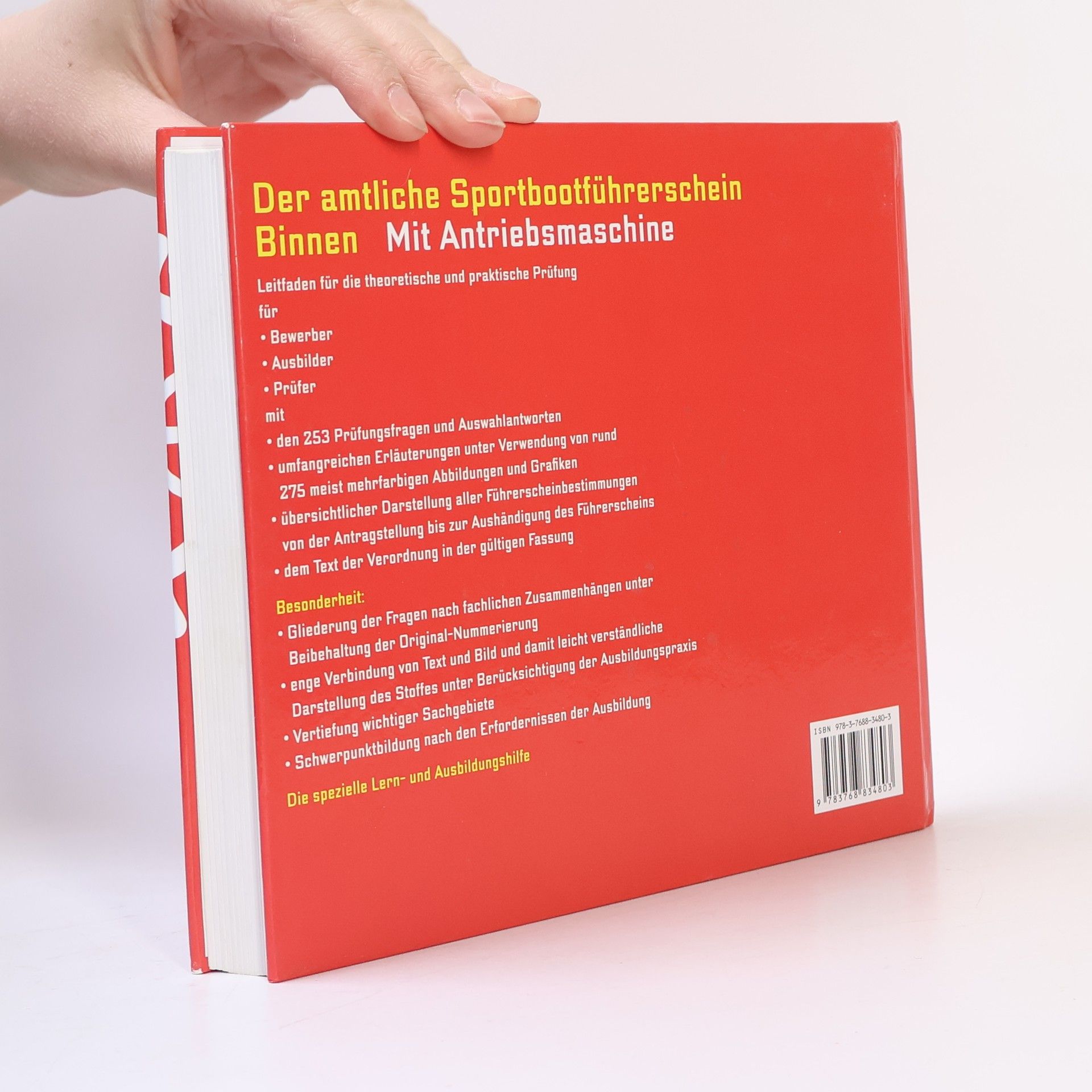 Leitfaden für die theoretische und praktische Prüfungfür° Bewerber° Ausbilder° Prüfermit° den 253 Prüfungsfragen und Auswahlantworten° umfangreichen Erläuterungen unter Verwendung von rund 275 meist mehrfarbigen Abbildungen und Grafiken° übersichtlicher Darstellung aller Führerscheinbestimmungen von der Antragstellung mit den erforderlichen Formularen bis zur Aushändigung des Führerscheins° dem Text der Verordnung in der gültigen Fassung Besonderheit:° Gliederung der Fragen nach fachlichen Zusammenhängen unter Beibehaltung der Original-Nummerierung° enge Verbindung von Text und Bild und damit leicht verständliche, Darstellung des Stoffes unter Berücksichtigung der Ausbildungspraxis° Vertiefung wichtiger Sachgebiete° Schwerpunktbildung nach den Erfordernissen der Ausbildung