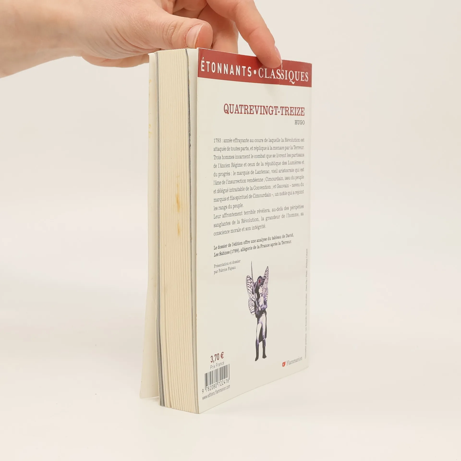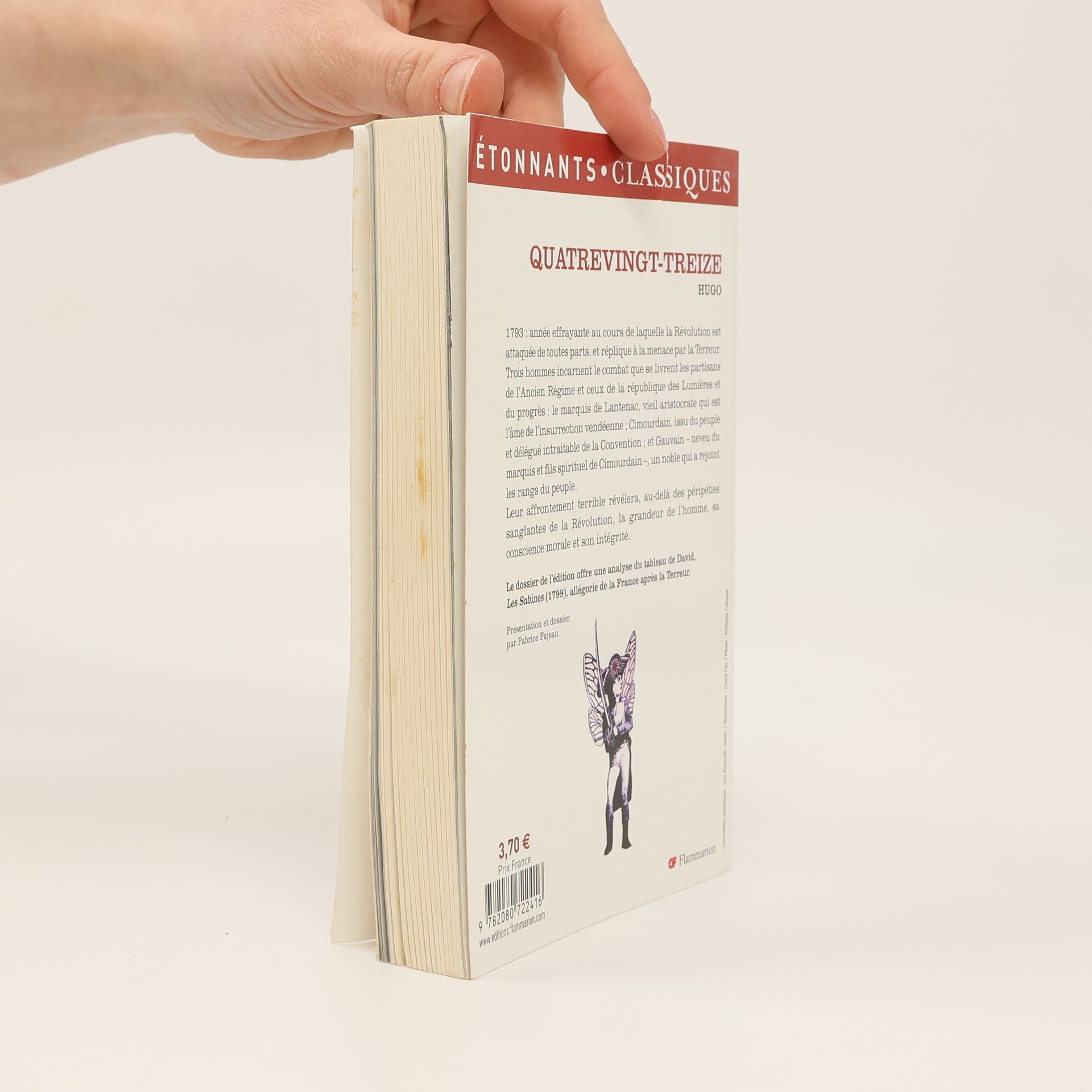 1793: année effrayante au cours de laquelle la Révolution est attaquée de toutes parts, et réplique à la menace par la Terreur. Trois hommes incarnent le combat que se livrent les partisans de l'Ancien Régime et ceux de la république des Lumières et du progrès : le marquis de Lantenac, vieil aristocrate qui est l'âme de l'insurrection vendéenne; Cimourdain, issu du peuple et délégué intraitable de la Convention; et Gauvain - neveu du marquis et fils spirituel de Cimourdain -, un noble qui a rejoint les rangs du peuple. Leur affrontement terrible révélera, au-delà des péripéties sanglantes de la Révolution, la grandeur de l'homme, sa conscience morale et son intégrité. Le dossier de l'édition offre une analyse du tableau de David, Les Sabines (1799), allégorie de la France après la Terreur.