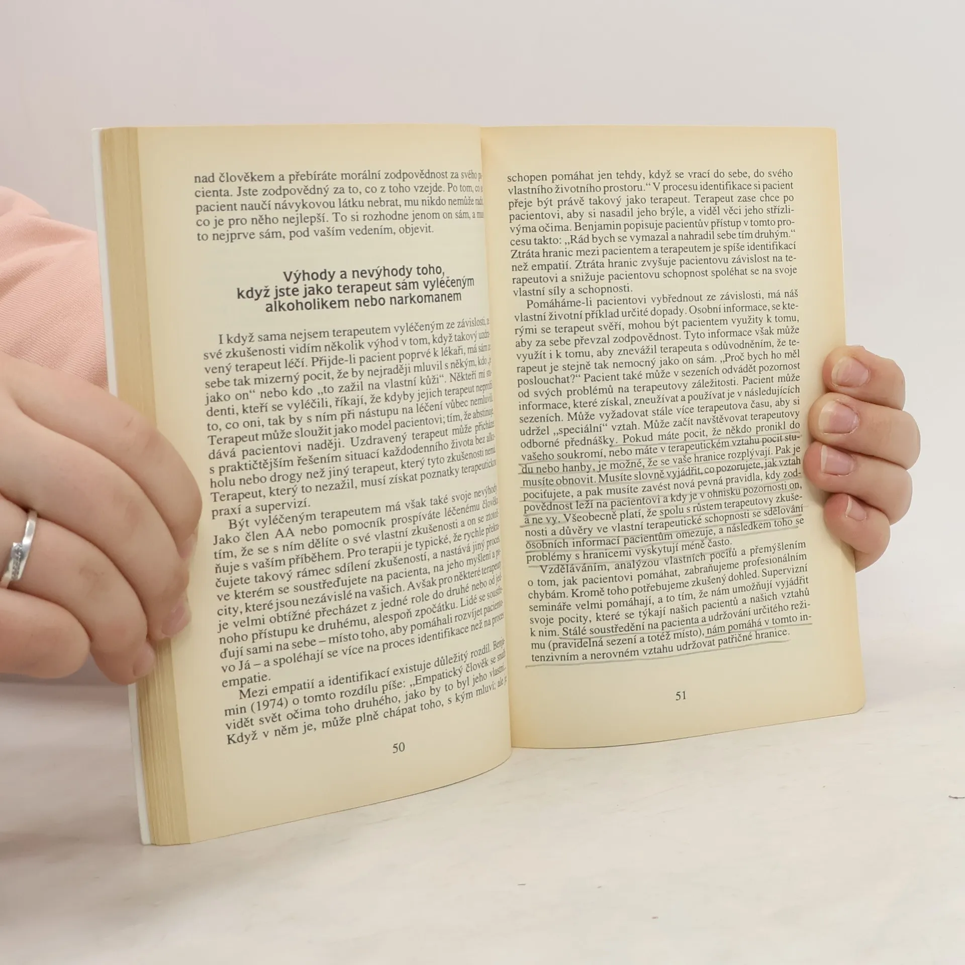 Náměty pro pastoraci. Tato kniha nabízí odborné rady, jak pracovat s drogovými nebo alkoholovými závislostmi a jak je léčit. Ať už jste terapeut, zdravotní sestra, psycholog, psychiatr nebo zaměstnavatel, můžete se dozvědět, jak k těmto onemocněním přistupovat. Vyvolává-li ve vás jedinec, který trpí takovou závislostí zlost, nebo pokud vás tato závislost zraňuje, naučíte se s pomocí této knihy oddělit osobu od nemoci. Pokud neskončíte se svou zlostí a s obviňováním lidí z toho, že si za svou závislost mohou sami, nedostane se vám emoční svobody, kterou potřebujete, abyste jim pomohli. ( z autorčina úvodu) Kniha je vlastně příručkou pro terapeuty, která obsahuje množství informací využitelných při pastoraci rizikových skupin. Autorka čerpá inspiraci jednak z okruhu svépomocných skupin, ale zároveň využívá i své mnohaleté zkušenosti v této oblasti.