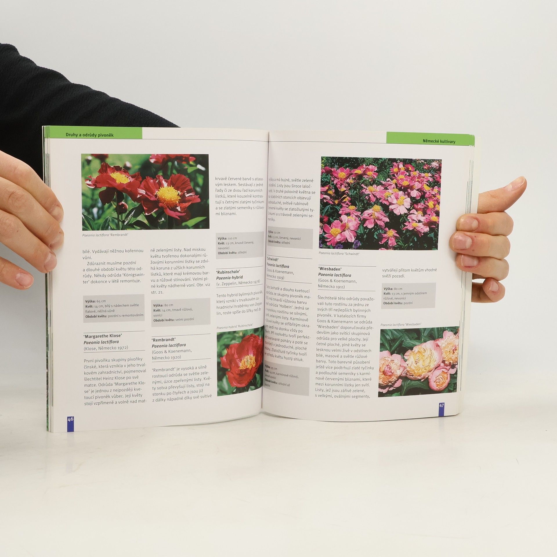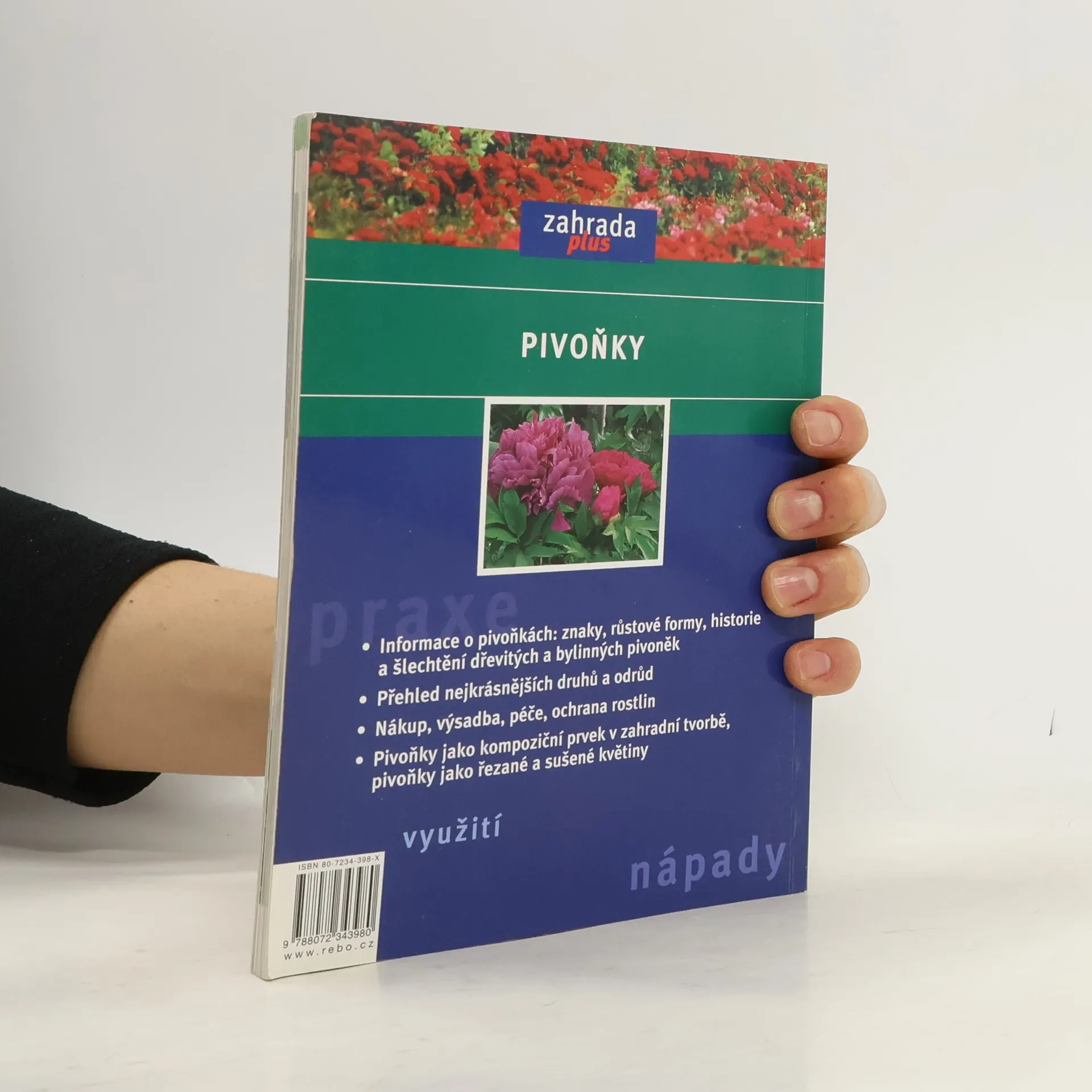 Díky své rozmanitosti i čarokrásným květům patří pivoňky ke královnám zahrádek, ať už jako jejich důležitý kompoziční prvek, rostliny v záhonech, či jako okrasné trvalky tvořící na zahradě solitér. Tato kniha popisuje botanické znaky těchto rostlin, přibližuje jejich historii, ale především představuje široké spektrum druhů pivoněk, od velmi nízké vytrvalé byliny po keř přesahující výšku člověka. Čtenář se v ní dozví též řadu informací o nákupu rostlin, jejich výsadbě, péči o ně, způsobu množení a ochraně proti chorobám a škůdcům..