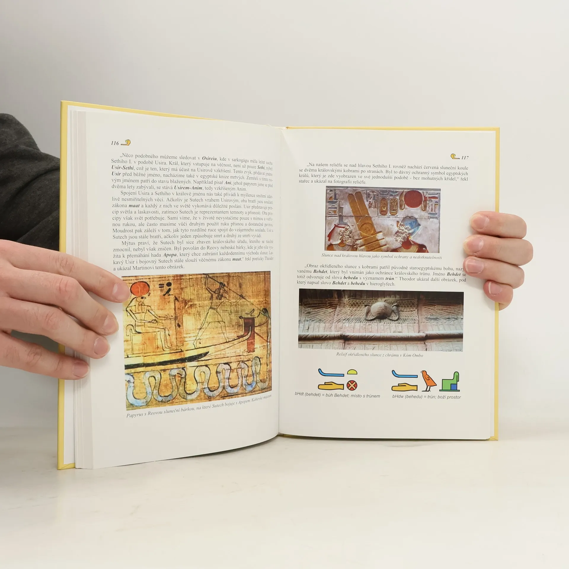 Tato publikace volně navazuje na předchozí knihu a je psána jako dialog mezi mladým Martinem a moudrým Theodorem, který medituje nad staroegyptským uměním a hieroglyfy. V prvních dvou kapitolách se čtenář seznamuje s počátky egyptského umění, včetně nejstarších jeskynních maleb v Sahare, a objevuje hlavní rysy a symboliku, včetně barev a malířských pravidel. Následující kapitoly se zaměřují na zlatý trůn Tutanchamona a reliéf z chrámu Sethiho I. v Abydu. Theodor se dotýká důležitých témat egyptské kultury, jako je rituál otevírání úst, putování zemřelého podsvětím či mumifikace, a snaží se inspirovat čtenáře staroegyptskými myšlenkami. Publikace není gramatickou učebnicí, což ji činí přístupnější. Tabulky s minislovníčkem a vysvětlením hieroglyfů umožňují čtenáři kontakt se staroegyptským písmem, ale mohou být vynechány. Kniha obsahuje mnoho barevných fotografií, které nejsou jen doplňkem, ale součástí textu, fungující jako obrázkové písmo v duchu staroegyptského umění, poskytující čtenáři možnost odpočinku a duchovního obohacení.