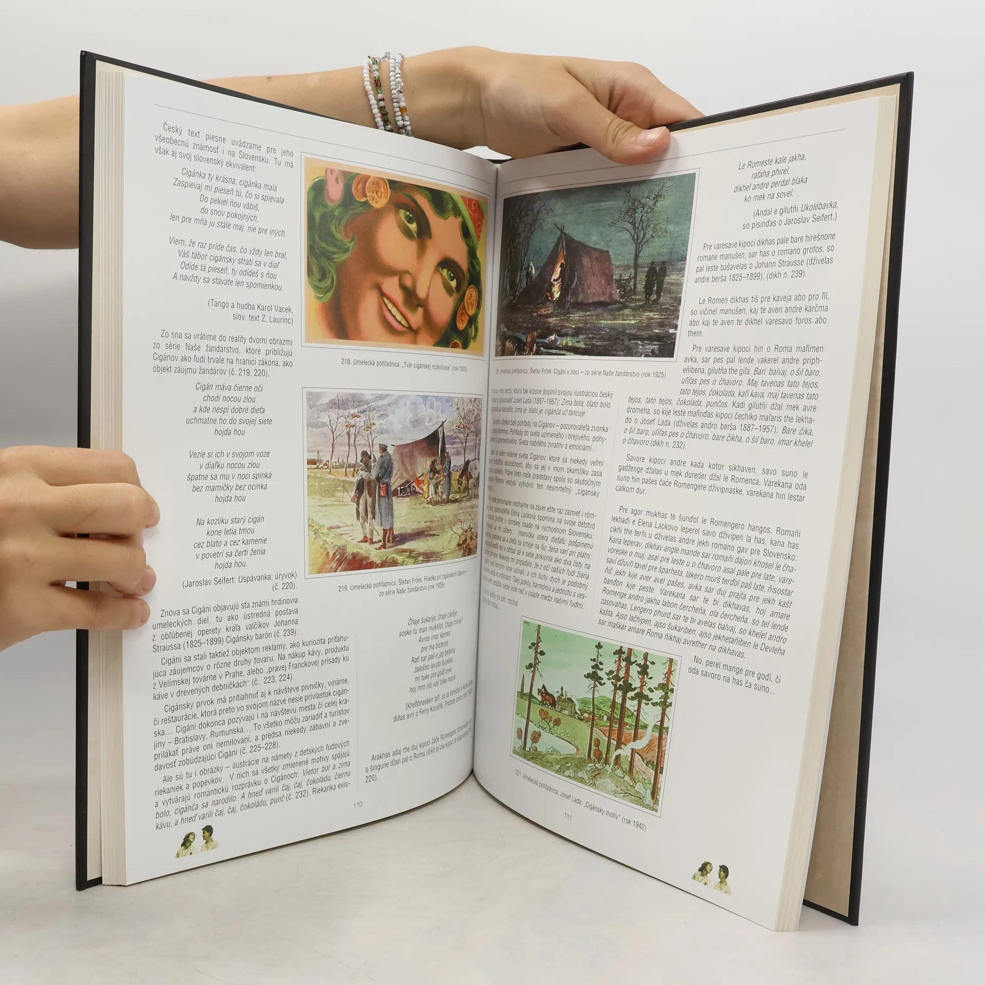 Pohlednice s "rómskou tématikou" jsou dnes oceňovaným sběratelským artiklem. Díky tomu, co zobrazují, se staly raritou mezi pohlednicemi. Kniha s nádhernou obálkou, s exklusivním formátem B4, přibližuje způsob života Romů, jejich oblíkaní, řemesla, jejich vášnivou lásku k hudbě a krásu cigánských žen. Text s podtitulem Cigánský mýtus napsala odbornice PhDr. Jana Horváthová, ředitelka Muzea romské kultury v Brně.