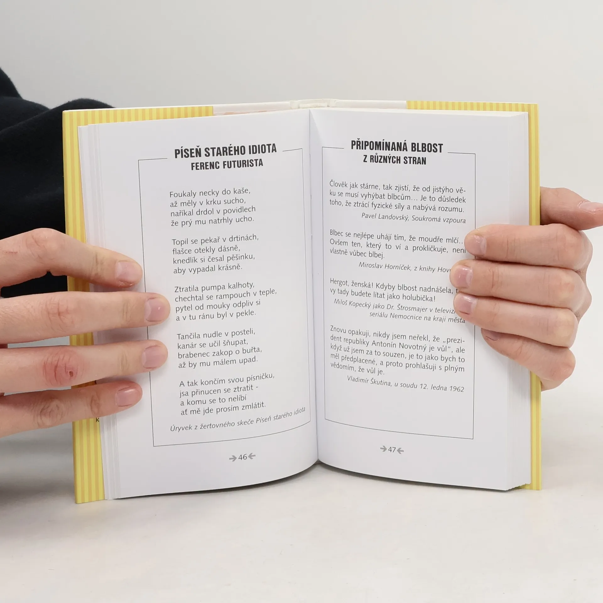Známý pražský knihkupec připravil další osvěžující výběr z citátů, aforismů, vtipů a bonmotů slavných osobností. Tentokrát si vybral vděčné téma - lidská blbost. Výběr doplňují perličky ze slohových prací, úředních záznamů i ze žákovských knížek. Knížku, kterou lze otevřít na kterékoli straně, kterou můžeme číst v tramvaji, ve vaně i v čekárně u zubaře, doplňují vtipné ilustrace, resp. karikatury Luboše Drastila.