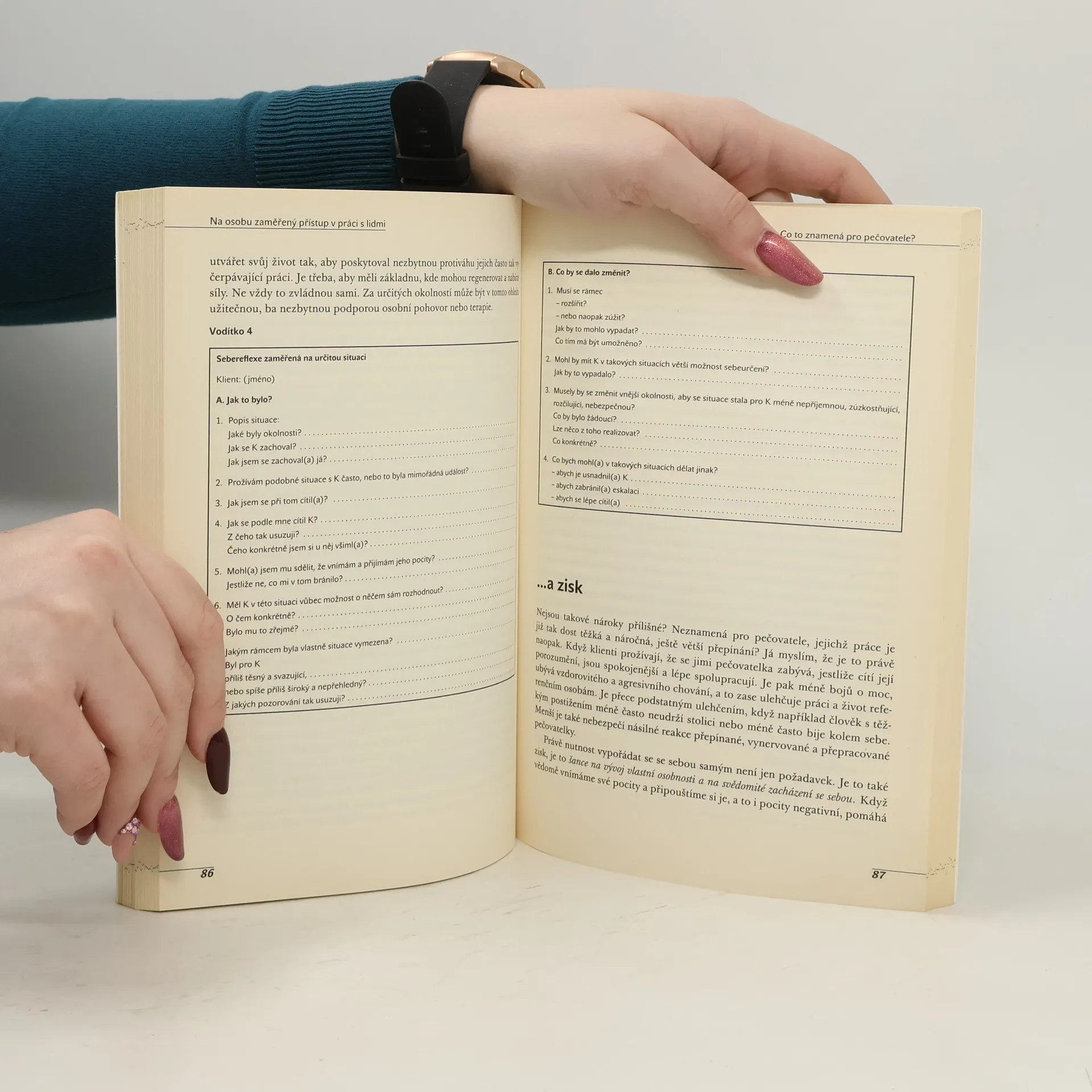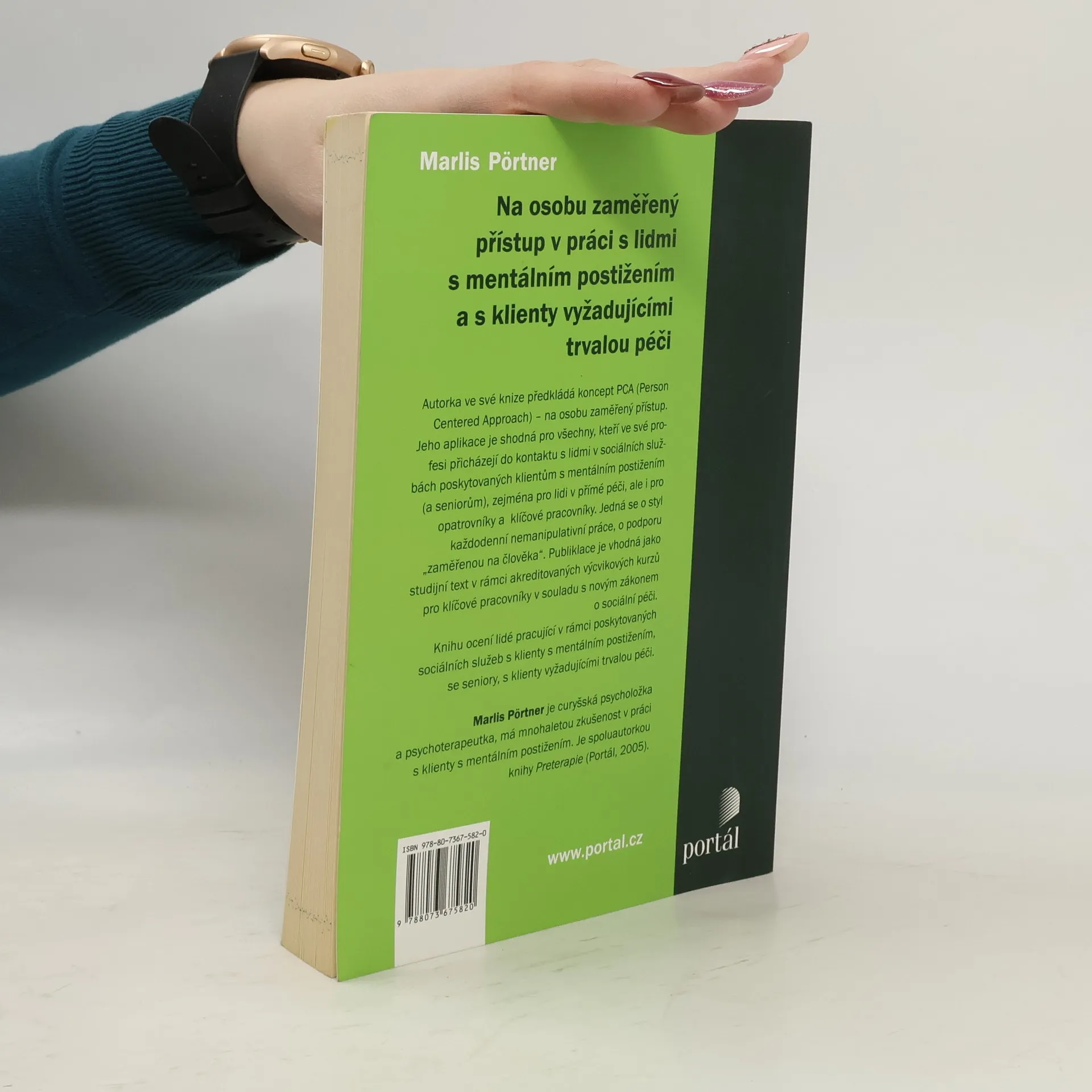 Autorka ve své knize předkládá koncept PCA (Person Centered Approach) na osobu zaměřený přístup. Aplikuje jej pro všechny, kteří ve své profesi přichází do kontaktu s lidmi v sociálních službách poskytovaných klientům s mentálním postižením (a seniorům), zejména pro lidi v přímé péči, ale i pro opatrovníky, klíčové pracovníky atd. Jedná se o styl každodenní nemanipulativní práce, o podporu zaměřenou na člověka. Kniha je vhodná jako studijní text v rámci akreditovaných výcvikových kurzů pro klíčové pracovníky v souladu s novým zákonem o sociální péči. Knihu ocení lidé pracující v rámci poskytovaných sociálních služeb s klienty s mentálním postižením, se seniory, s klienty vyžadujícími trvalou péči. Marlis Pörtner je curyšská psycholožka a psychoterapeutka, má mnohaletou zkušenost v práci s klienty s mentálním postižením. Je spoluautorkou knihy Preterapie.