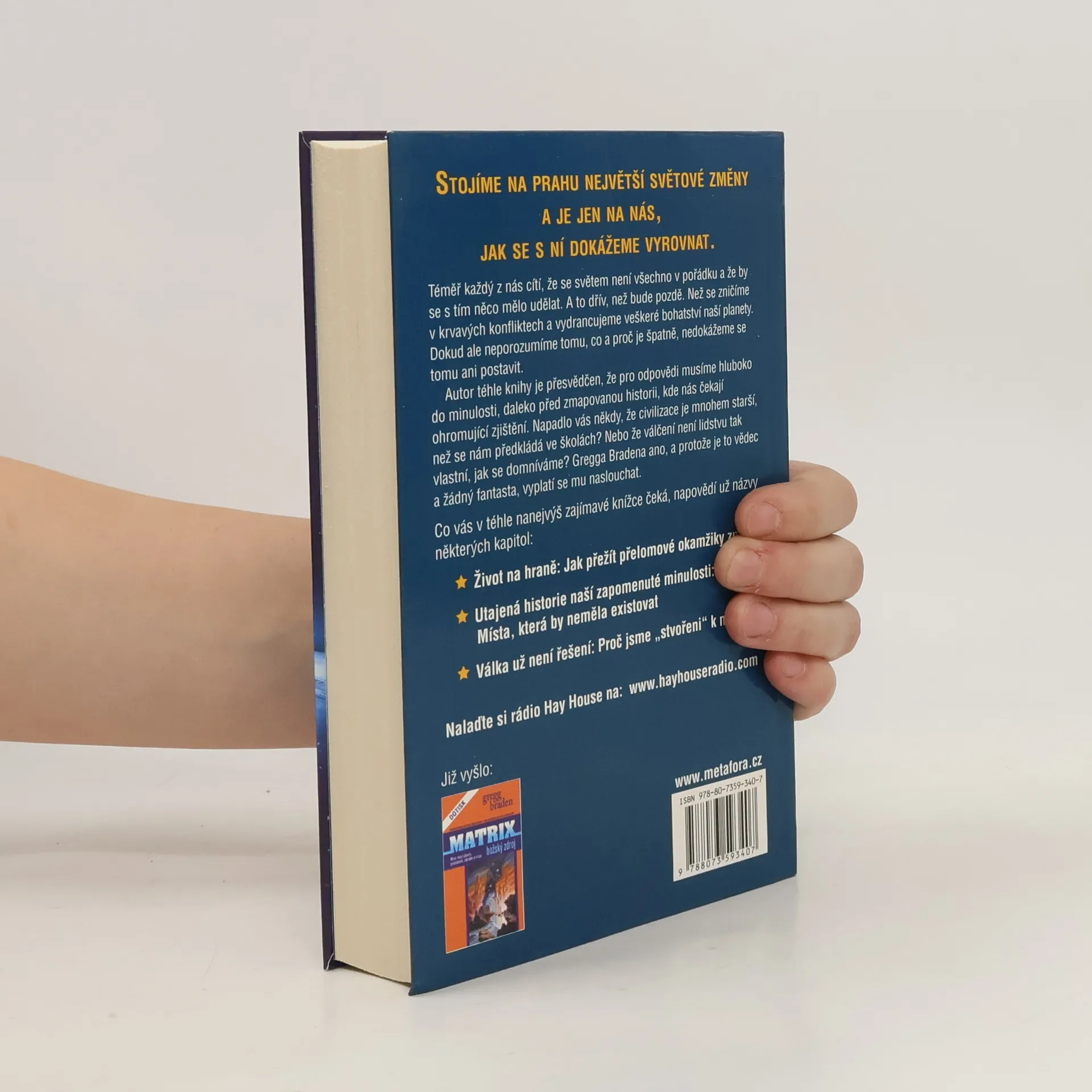 Téměř každý z nás cítí, že se světem není všechno v pořádku a že by se s tím něco mělo udělat. A to dřív, než se zničíme v krvavých konfliktech a vydrancujeme veškeré bohatství naší planety. Dokud ale neporozumíme tomu, co a proč je špatně, nedokážeme se tomu ani postavit. Pro odpovědi musíme ovšem hluboko do minulosti, daleko před zmapovanou historii, kde nás čekají ohromující zjištění. Napadlo vás někdy, že civilizace je mnohem starší, než se nám předkládá ve školách? Nebo že válčení není lidstvu tak vlastní, jak se domníváme? Gregga Bradena ano, a protože je to vědec a žádný fantasta, vyplatí se mu naslouchat. Zdá se, že historie se v obrovských cyklech opakuje a že právě teď se ke konci jednoho takového "světového věku" rychle blížíme.