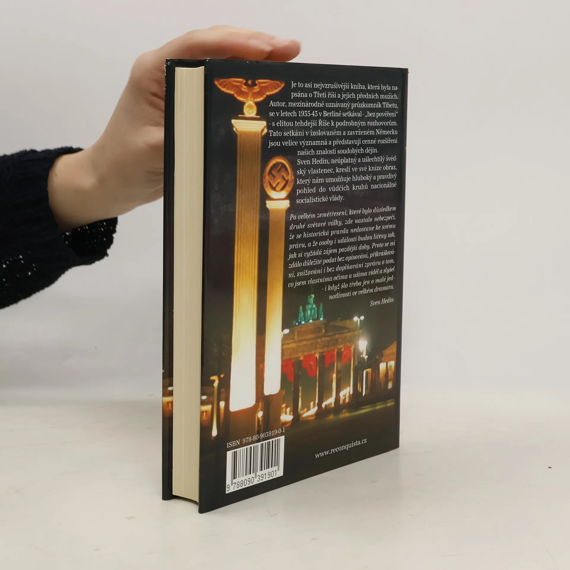 Je to asi nejvzrušivější kniha, která byla napsána o Třetí říši a jejích předních mužích. Autor, mezinárodně uznávaný průzkumník Tibetu, se v letech 1935-43 v Berlíně setkával - „bez pověření“ - s elitou tehdejší Říše k osobním rozhovorům. Tato setkání v izolovaném a zavrženém Německu jsou velice významná a představují cenné rozšíření našich znalostí soudobých dějin. Sven Hedin, neúplatný a ušlechtilý švédský vlastenec, nám umožňuje hluboký pohled do vůdčích kruhů nacionálně socialistické vlády. Po velkém zemětřesení, které bylo důsledkem druhé světové války, zde nastalo nebezpečí, že se historická pravda nedostane ke svému právu, a že osoby i události budou líčeny tak, jak si vyžádá zájem pozdější doby. Proto se mi zdálo důležité podat bez opisování, přikrášlování, snižování i bez doplňování zprávu o tom, co jsem vlastníma očima a ušima viděl a slyšel - i když šlo třeba jen o malé jednotlivosti ve velkém dramatu. Sven Hedin