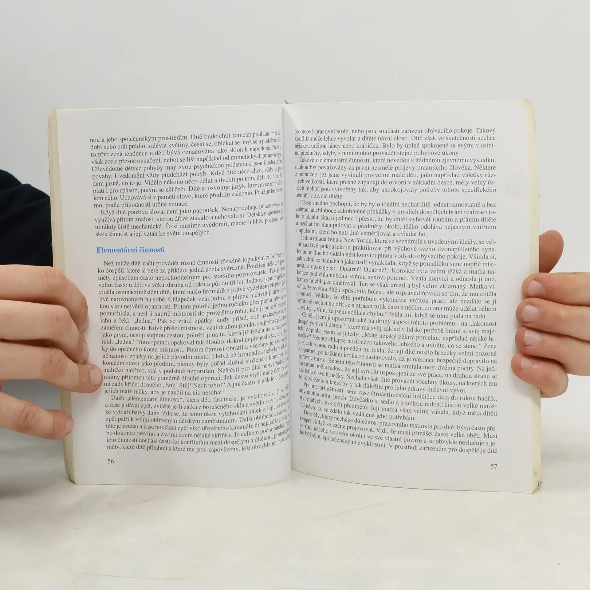 Autorka s nevšedním zájmem sleduje psychiku dítěte zejména v raném dětství a upozorňuje na zvláštnosti vývoje dětského vnímání okolního světa. Pozoruhodná kniha italské lékařky (1870-1952), která se celý život zabývala problémy výchovy a vzdělávání dětí - a to i dětí nejrůznějším způsobem postižených - a v tomto svém počínání dosáhla díky svému vzácnému vcítění do duše dítěte vynikajících úspěchů. - Závěrečná fotografická příloha uvádí pomůcky používané pro smyslový rozvoj dítěte.