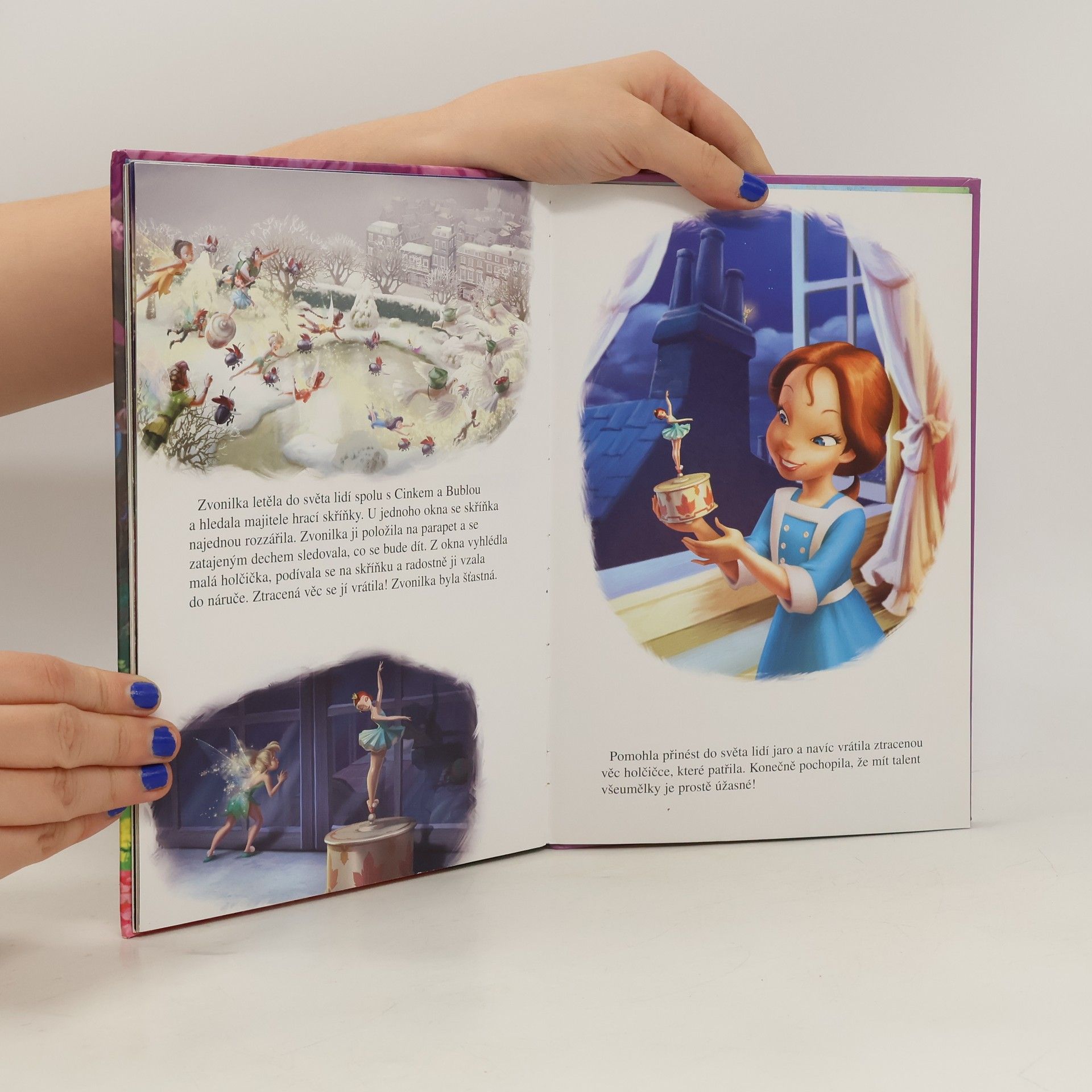 Věděli jste, že víly se rodí z prvního dětského smíchu? Jakmile se děťátko poprvé zasměje, smích odletí oknem a zamíří ke druhé hvězdě napravo, přes kterou vede cesta do Nezemě, kouzelné krajiny víl. Zrovna tak se narodila i Zvonilka, víla všeumělka s talentem na opravování a vynalézání. O tom, jak přišla do Nezemě a seznámila se s ostatními vílami, si můžete přečíst v této knížce.