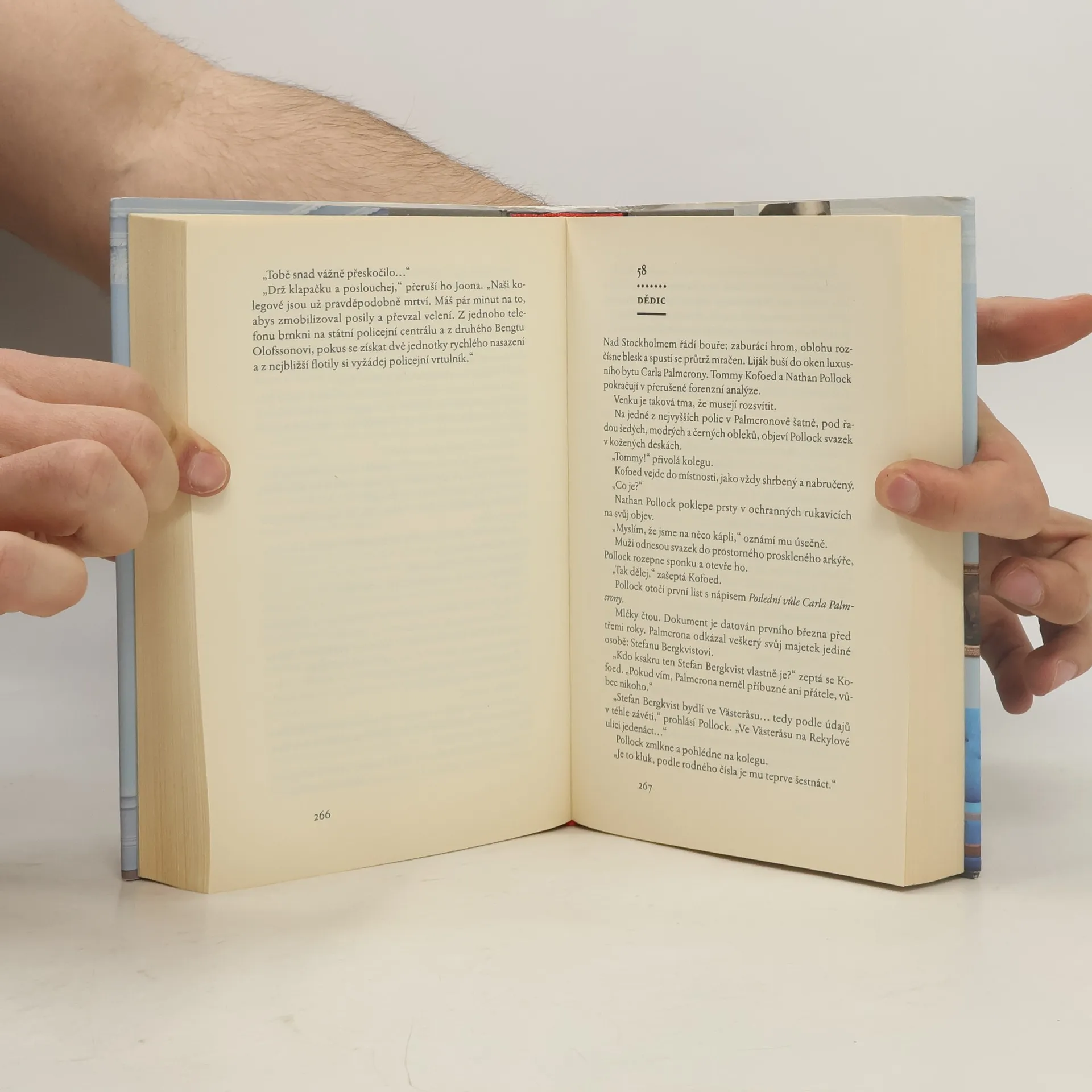 Po obrovském úspěchu Hypnotizéra je Lars Kepler v plné síle zpátky! Jedné letní noci je na palubě opuštěné lodi ve stockholmském zálivu nalezeno mrtvé tělo. Plíce ženy jsou plné slané vody, ale stopy po ní nezůstaly ani na oblečení ani na těle. „Utopila se,“ prohlásí lékař. „Utopila?“ Lékař přikývne a usměje se: „Utopila se přímo na palubě plující lodi.“ „Asi ji někdo uviděl ve vodě a vytáhl ji nahoru.“ „Kdyby to bylo tak jednoduché, vůbec bych nemarnil váš čas…“ Dalšího dne je ve svém bytě nalezen mrtvý muž. Houpe se v oprátce uvázané na háku ve stropě, na kterém běžně visí lustr. Jak se to stalo? Strop je vysoký a v místnosti není jediný kus nábytku, na který by muž mohl vylézt. Ale detektiv Joona Linna je stejně přesvědčen, že šlo o sebevraždu. Samozřejmě že má pravdu. Muž spáchal záhadnou sebevraždu, ale i to je pouze předehra k závratně rychlému a nebezpečnému běhu událostí. Něco vám řeknu: jsou dohody, které nezruší ani smrt… Pokračování Hypnotizéra je stejně úspěšné jako první díl románové řady. Práva na knihu byla prodána do čtyřiceti zemí.