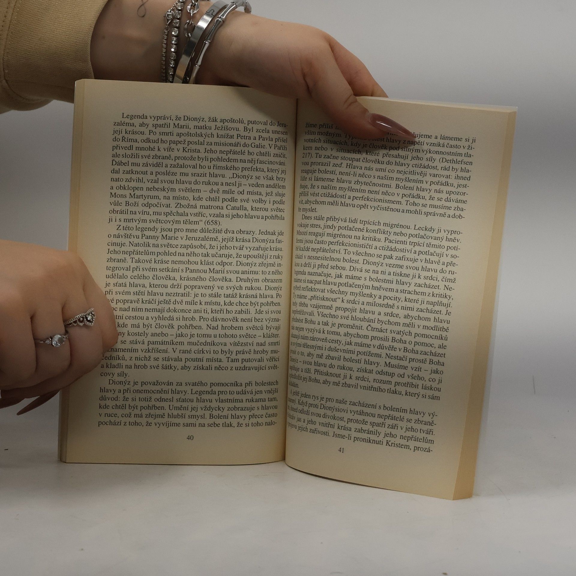 Podtitul: Čtrnáct svatých pomocníků. Starobylá úcta ke čtrnácti svatým pomocníkům se šířila obzvláště v dobách, kdy lidstvo navštěvovala různá soužení. Byla pro ně formou terapie, posilovala jejich důvěru v Boha v čase nouze a úzkosti. Autor představuje jednotlivé světce jako ochránce v každodenních trápeních, jako pomocníky ve zvládání vlastních poranění. Jednotlivé legendy chápe jako ukazatele na cestě k uzdravení.