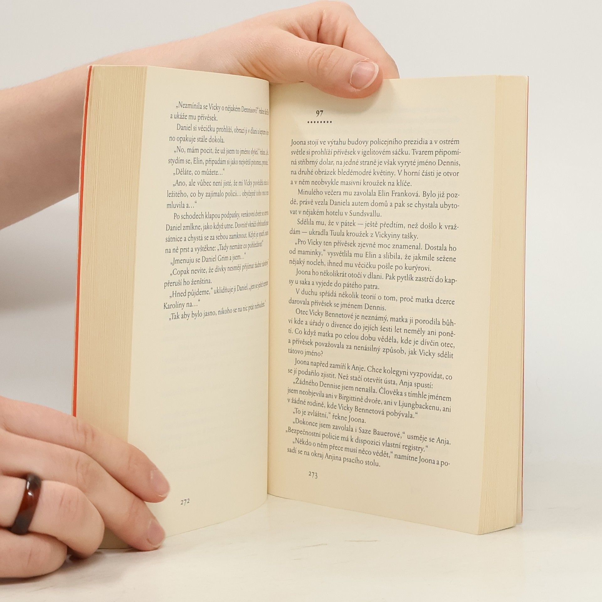 Inspektor Joona Linna již strávil na místě činu více času než kterýkoliv jiný detektiv. Stále má však pocit, že mu něco uniklo. Než odejde z toho hrůzostrašného pokoje, musí objevit nějaký detail, jehlu v kupce sena. Hledí na dívku v posteli. Obličej má zakrytý rukama, jako by si hrála na slepou bábu. Opatrně se k ní skloní. Pod nehtem ukazováčku na levé ruce spatří tmavočervenou tečku. Vypadá jako rudé zrnko písku nebo úlomek rubínu. Komisař se sklání blíž a blíž, až ucítí sladkou vůni. A náhle pochopí, co má dívka pod nehtem… Policie při vyšetřování komplikovaných případů běžně využívá pomoci spiritistických médií, není však známo, že by takováto spolupráce někdy přinesla ovoce… Flora Hansenová se rozhodne oznámit policii, že se jí podařilo spojit s duchem zavražděné dívky.