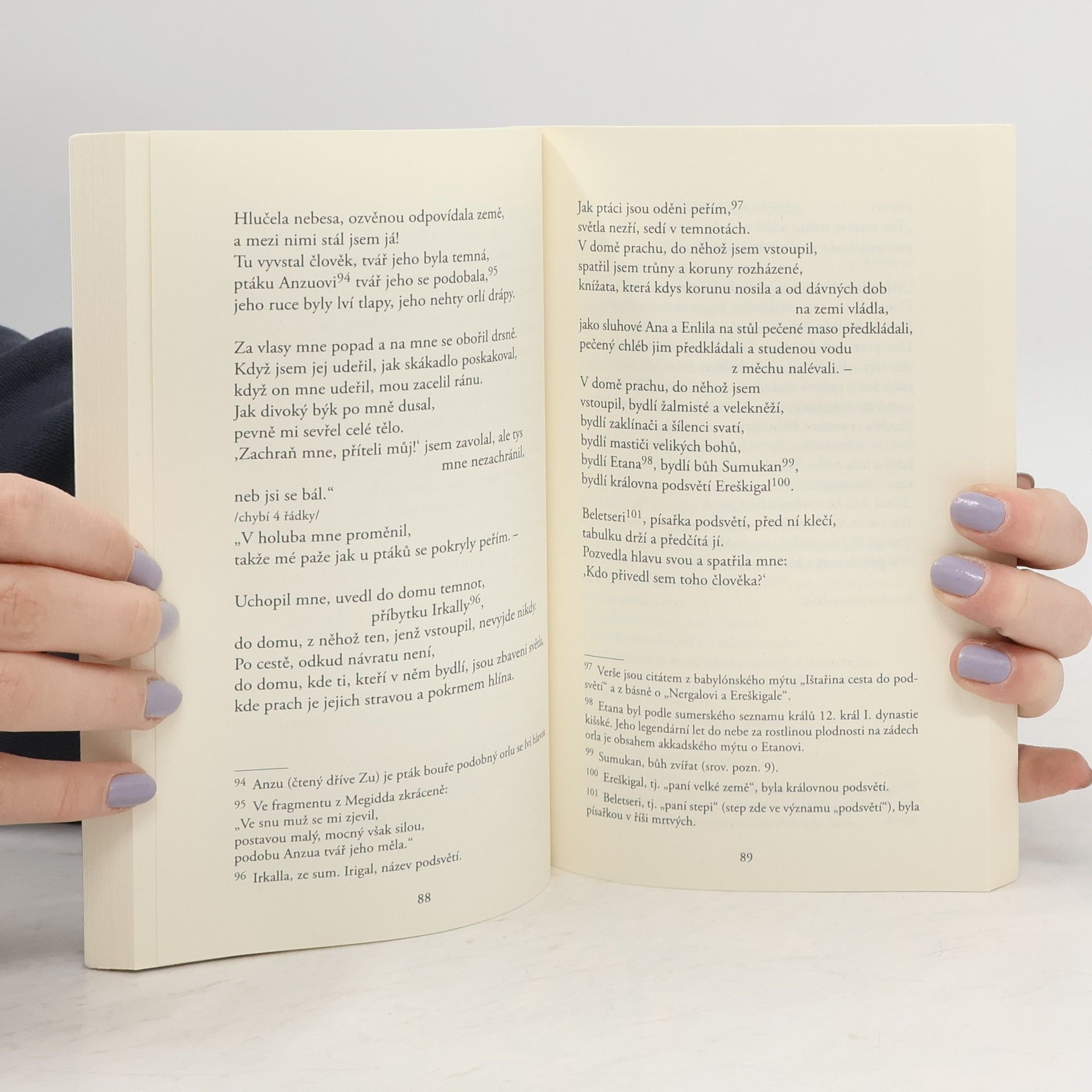 Publikace obsahuje nejvýznamnější literární dílo starověkého Předního Východu, jehož text se zachoval v ninivské knihovně asyrského panovníka Aššurbanipala. Gilgameš je legendárním panovníkem sumerského města Uruku, který, sužován strachem z konečnosti lidského života, marně usiluje o získání nesmrtelnosti. Teprve po mnoha útrapách pochopí, že věčná památka člověka může přetrvat pouze v díle, které tu po sobě zanechá. Konečná podoba tohoto babylonského eposu se zrodila v dlouhém vývojovém procesu, na jehož počátku stály jednotlivé sumerské epické básně.