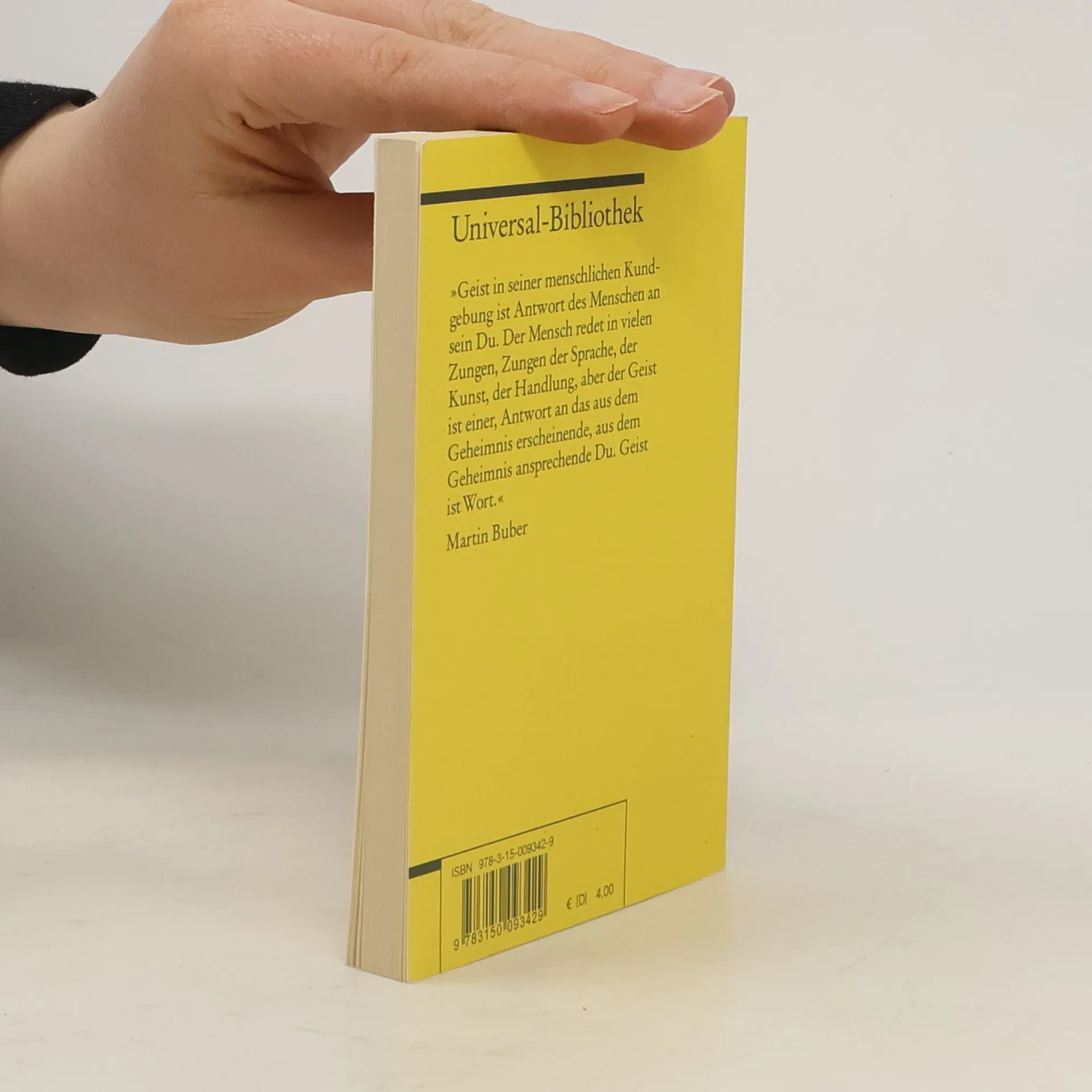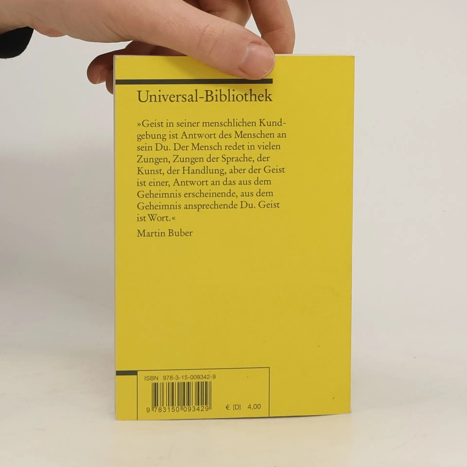 Bubers 'Ich und Du' ist das Buch, dem es für ein denkbar größtes Publikum gelungen ist, dieses Verlagen nach einem ursprünglichen und also gelingenden und heilen Miteinander fasslich ins Wort zu bringen.