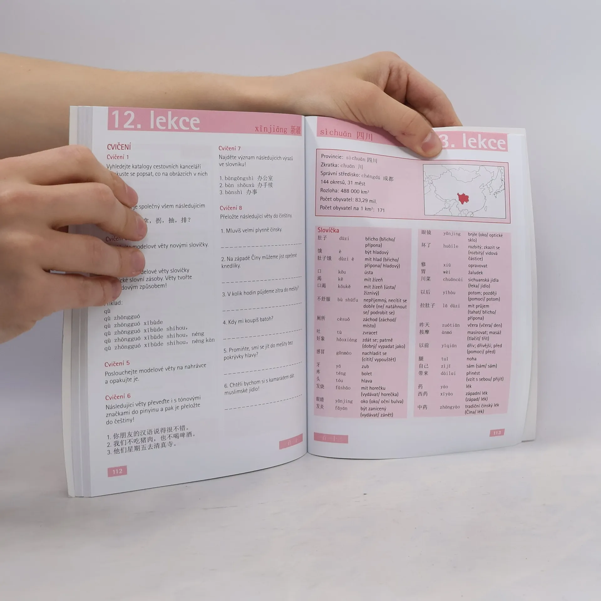 Nová, rozsáhlá učebnice čínštiny nejen pro samouky, ale i pro kurzy, vás rychle a s jistotou seznámí s moderní hovorovou čínštinou, ofi ciálním jazykem Čínské lidové republiky. Snazší proniknutí do standardní čínštiny vám umožní mezinárodně platná fonetická transkripce pinyin . Díky didaktickému zpracování a postupně se zvyšující obtížnosti je tato učebnice vhodná nejen pro úplné nováčky, ale i pro „věčné začátečníky“. Učebnice obsahuje úplný výklad výslovnosti a rozsáhlý seznam kompozičních prvků čínských znaků (radikálů). Na základě autentických modelových vět se naučíte úspěšně dorozumívat v běžných životních situacích, seznámíte se s nejdůležitějšími tématy každodenního života v nejvýznamnějších čínských provinciích. Každá z 15 lekcí obsahuje slovíčka a modelové věty jak v čínských znacích, tak i v pinyinu, v doslovném i volném překladu do čínštiny, dále nácvik nových znaků s ukázkou pořadí jednotlivých tahů, rozšiřující slovní zásobu i řadu cvičení. Poznámky k jazykovým nebo regionálním zvláštnostem poskytují tzv. infoboxy. Důležité základy gramatiky najdete přímo u modelových vět, shrnuté a abecedně seřazené znova na konci knihy. Součástí učebnice je i klíč k řešení cvičení a oboustranný slovníček.