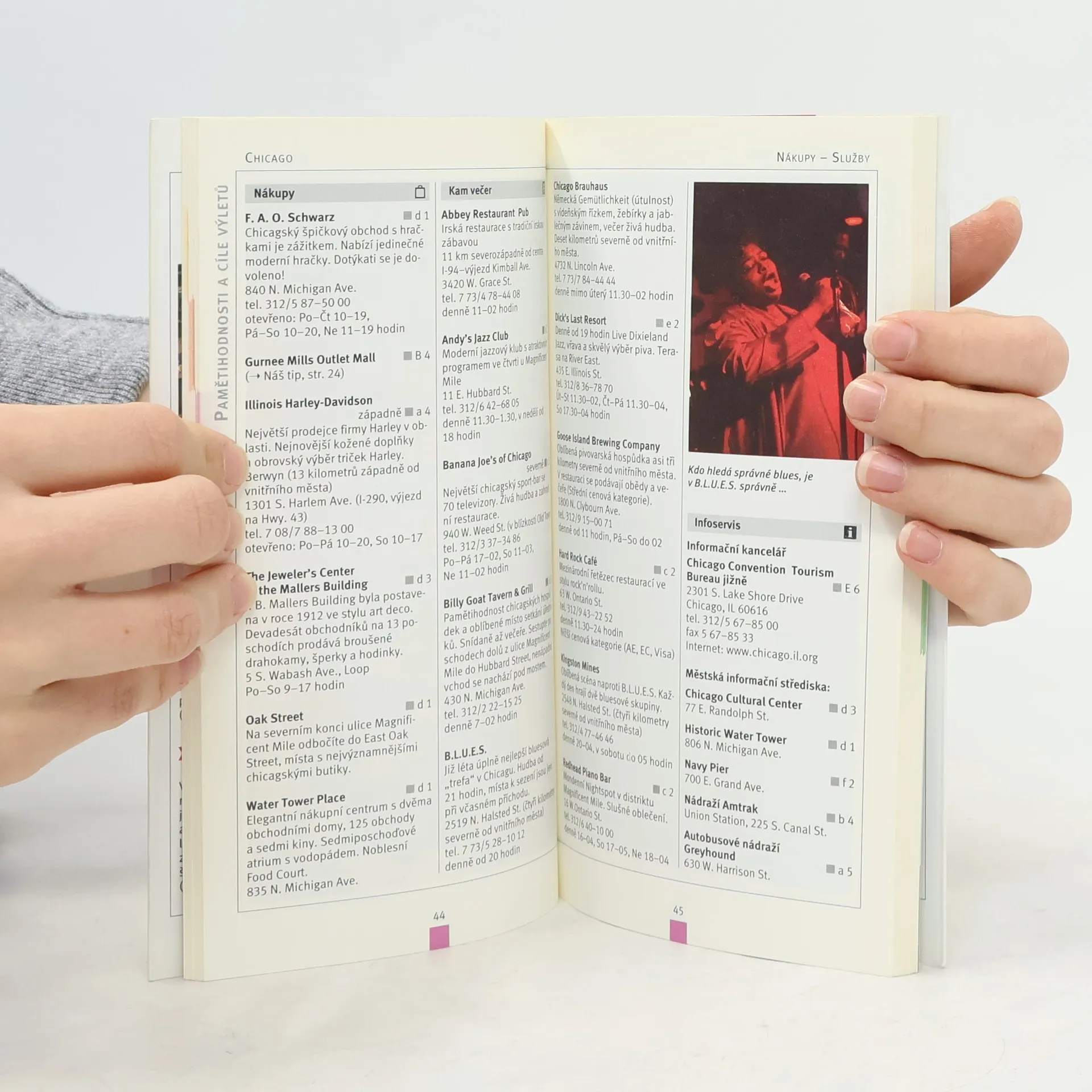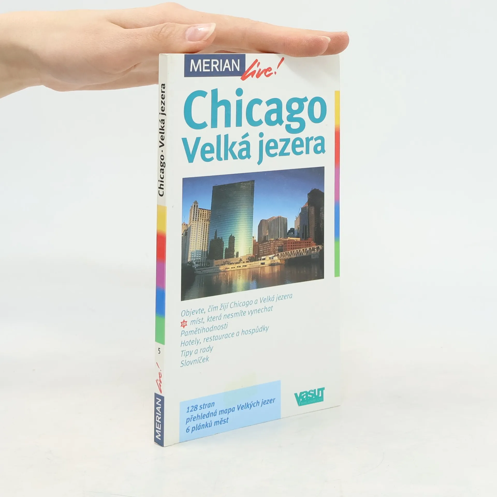 Průvodce po velkoměstech, významnějších městech a zajímavých místech v oblasti Velkých jezer na severu USA. U každého města (Chicago, Cincinnati, Cleveland, Detroit, Indianopolis, Milwaukee, Minneapolis, Niagara Falls, Pittsburg) je uvedena jeho stručná charakteristika spolu s informacemi o možnostech ubytování, stravování, kulturního vyžití (pamětihodnosti, muzea). Vše doplňují tipy na cyklistické, pěší i automobilové výlety, praktické rady pro cestování, slovníček základních anglických výrazů a frází a rejstřík popsaných míst