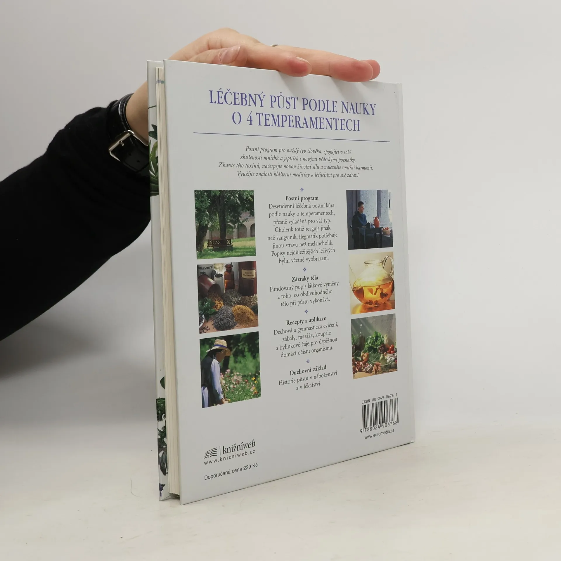 LÉČEBNÝ PŮST PODLE KLÁŠTERNÍ NAUKY O 4 TEMPERAMENTECH Postní program pro každý typ člověka, spojující v sobě zkušenosti mnichů a jeptišek s novými vědeckými poznatky. Zbavte tělo toxinů, načerpejte novou životní sílu a nalezněte vnitřní harmonii. Využijte znalosti klášterní medicíny a léčitelství pro své zdraví. Postní program Desetidenní léčebná postní kúra podle nauky o temperamentech, přesně vyladěná pro váš typ. Cholerik totiž reaguje jinak než sangvinik, flegmatik potřebuje jinou stravu než melancholik. Popisy nejdůležitějších léčivých bylin včetně vyobrazení. Zázraky těla Fundovaný a poutavý popis látkové výměny a toho, co obdivuhodného tělo při půstu vykonává. Recepty a aplikace Dechová a gymnastická cvičení, zábaly, masáže, koupele a bylinkové čaje pro úspěšnou domácí očistu organismu. Duchovní základ Historie půstu v náboženství a v lékařství.