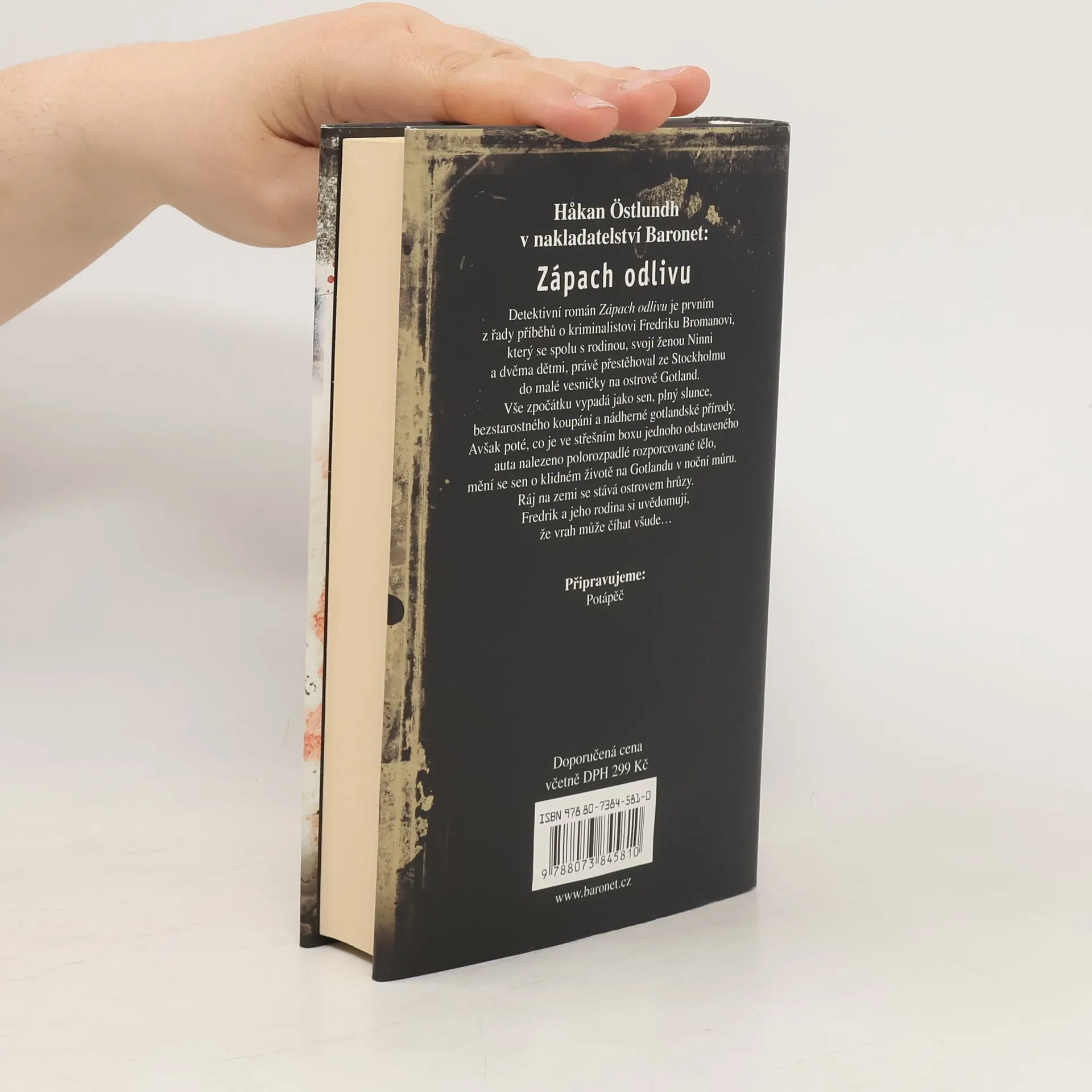 Detektivní román Zápach odlivu je prvním z řady příběhů o kriminalistovi Fredriku Bromanovi, který se spolu s rodinou, svojí ženou Ninni a dvěma dětmi, právě přestěhoval ze Stockholmu do malé vesničky na ostrově Gotland. Vše zpočátku vypadá jako sen, plný slunce, bezstarostného koupání a nádherné gotlandské přírody. Avšak poté, co je ve střešním boxu jednoho odstaveného auta nalezeno polorozpadlé rozporcované tělo, mění se sen o klidném životě na Gotlandu v noční můru. Ráj na zemi se stává ostrovem hrůzy. Fredrik a jeho rodina si uvědomují si, že vrah může číhat všude.