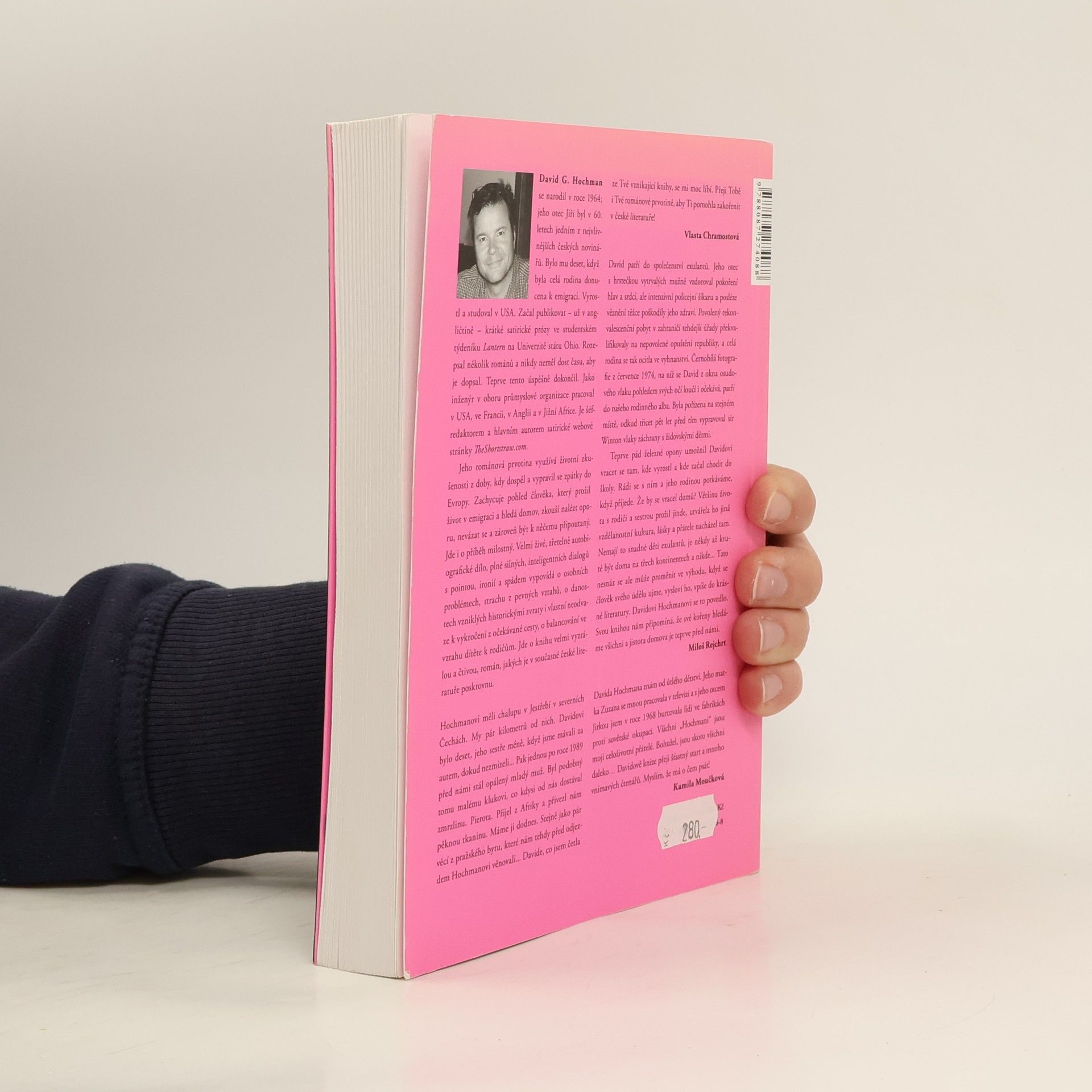 Autor knihy David G. Hochman se narodil v roce 1964; jeho otec Jiří, který tuto knihu přeložil z angličtiny, byl v 60. letech jedním z nejvlivnějších českých novinářů. Měl deset, když byla celá rodina donucena k emigraci. Vyrostl a studoval v USA. Začal publikovat - už v angličtině - krátké satirické prózy ve studentském týdeníku Lantern na Univerzitě státu Ohio. Jako inženýr v oboru průmyslové organizace pracoval v USA, ve Francii, v Anglii a v Jižní Africe. Je šéfredaktorem a hlavním autorem satirické webové publikace TheShortstraw.com. Jeho románová prvotina využívá životní zkušenosti z doby, kdy dospěl a vypravil se zpátky do Evropy. Zachycuje pohled člověka, který prožil život v emigraci a hledá domov, zkouší nalézt oporu, nevázat se a zároveň být k něčemu připoutaný. Jde i o příběh milostný. Velmi živé, zřetelně autobiografické dílo, plné silných, inteligentních dialogů s pointou, ironií a spádem vypovídá o osobních problémech, strachu z pevných vztahů, o danostech vzniklých historickými zvraty i vlastní neodvaze k vykročení z očekávané cesty, o balancování ve vztahu dítěte k rodičům. Jde o knihu velmi vyzrálou a čtivou, román, jakých je v současné české literatuře poskrovnu.